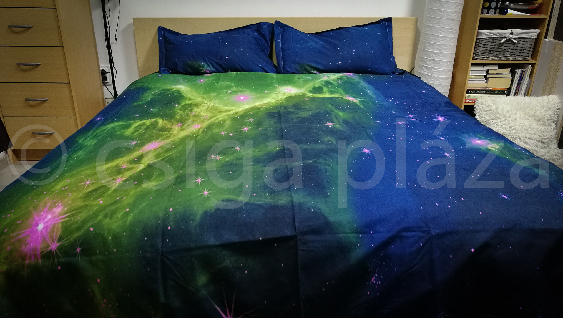 Galaxis gázfelhő kék-zöld 3 részes ágynemű garnitúra. SZIMPLA 1 személyes (3 DB).100% pamut