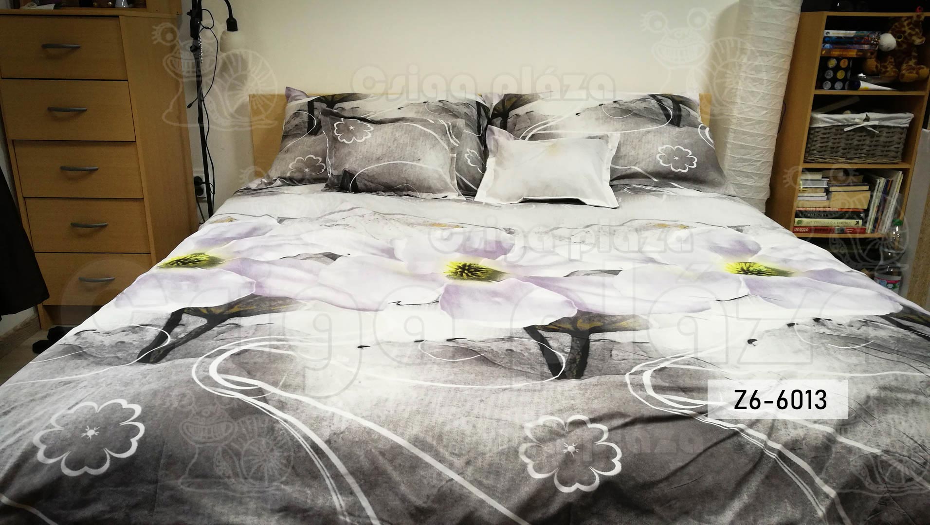 Fehér Magnólia szürke alapon 6 részes ágynemű garnitúra