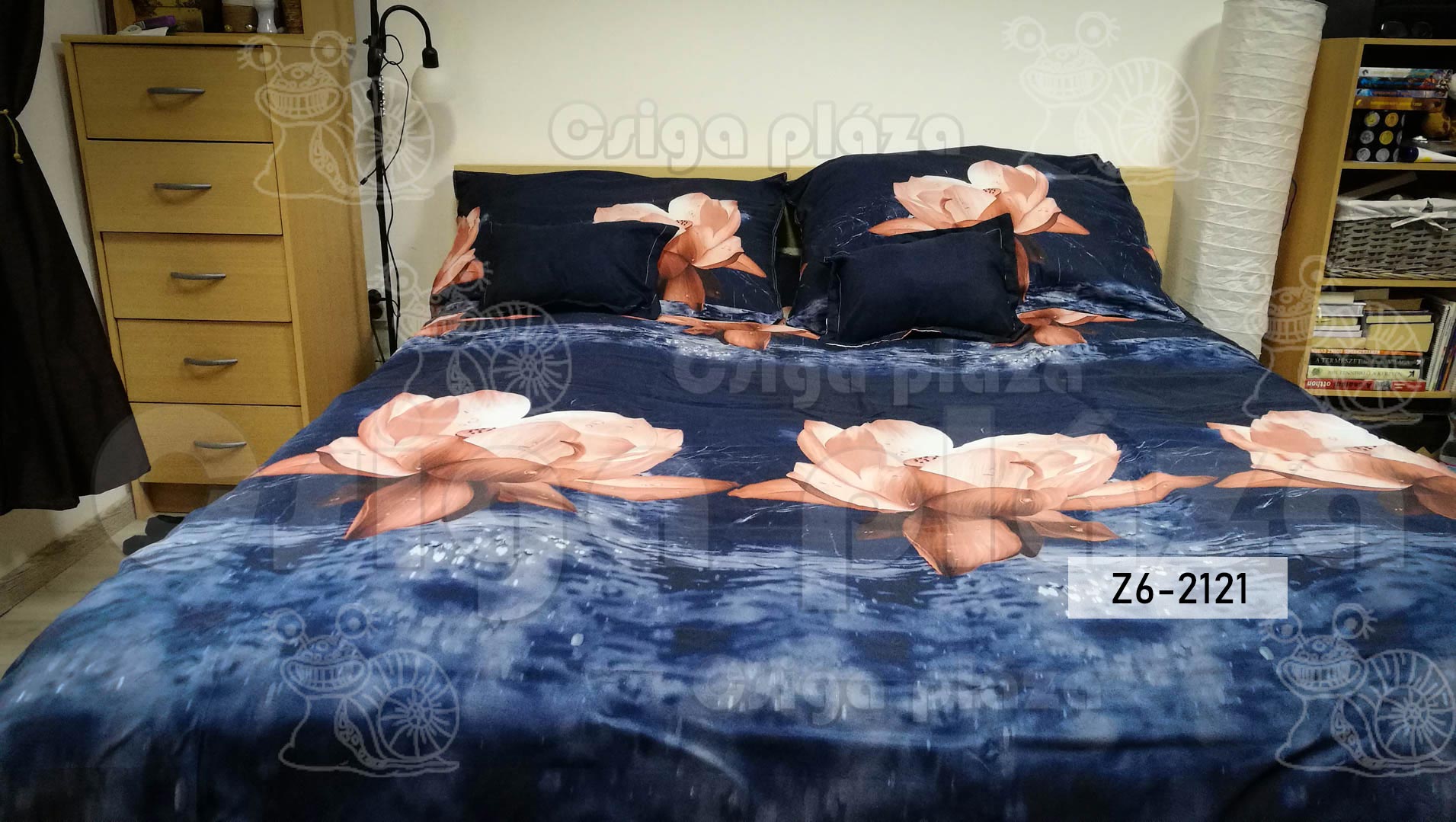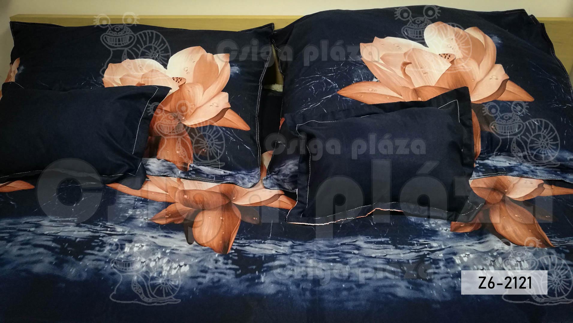 Lótuszvirág kék alapon 6 részes ágyneműszett. 100% pamut,