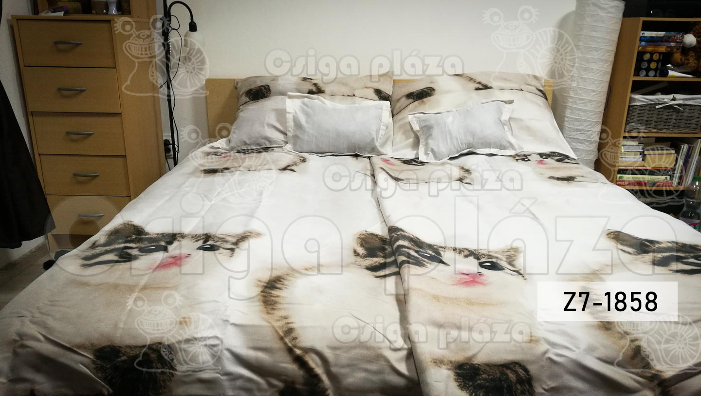 Fehér cica 7 részes ágynemű garnitúra. 100% pamut.