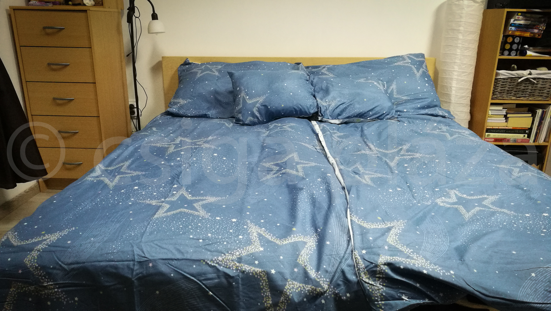 Sendia kék csillagos 6 részes ágynemű garnitúra. 80% pamut 20% poliészter Gombos kivitel.