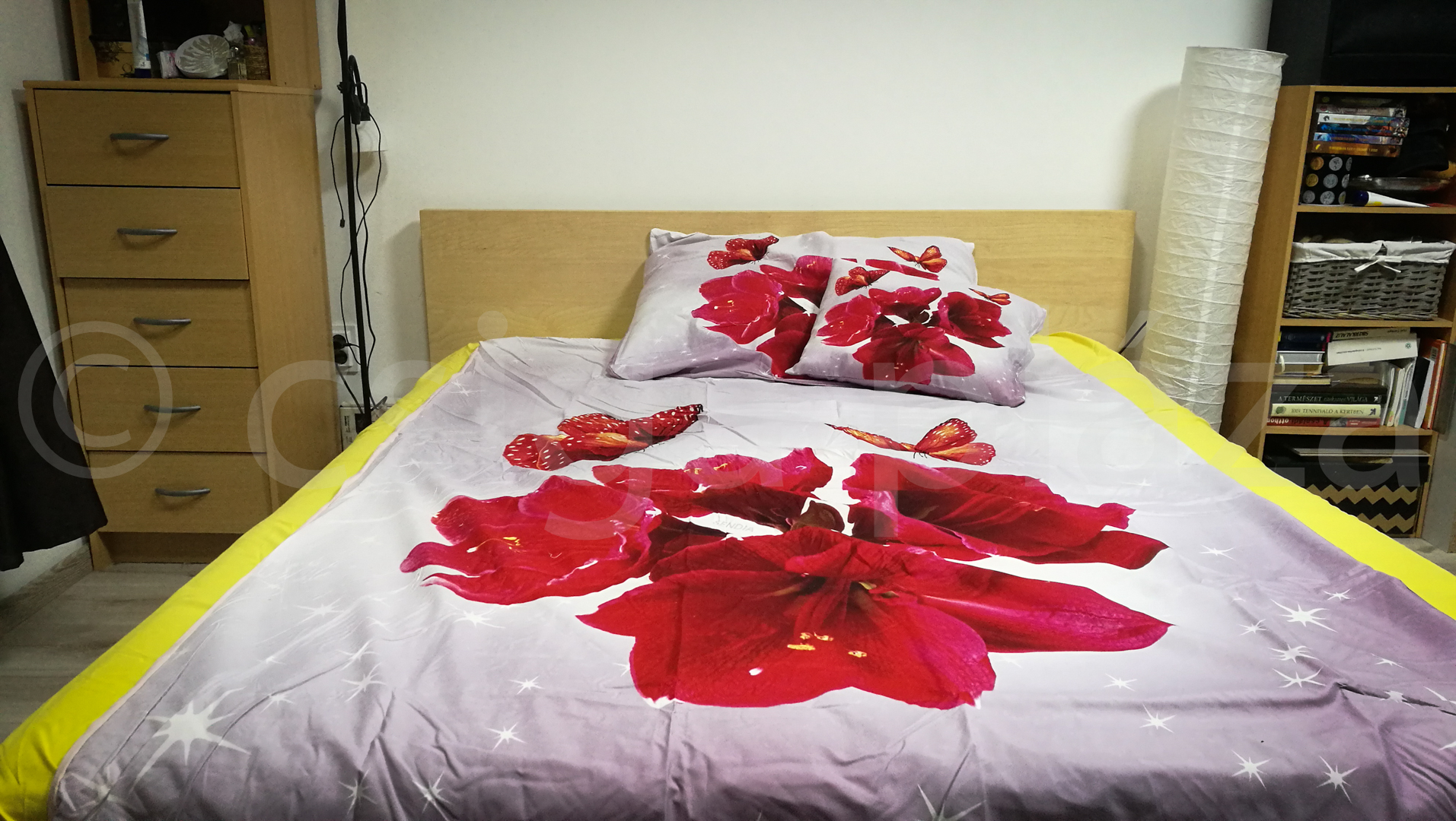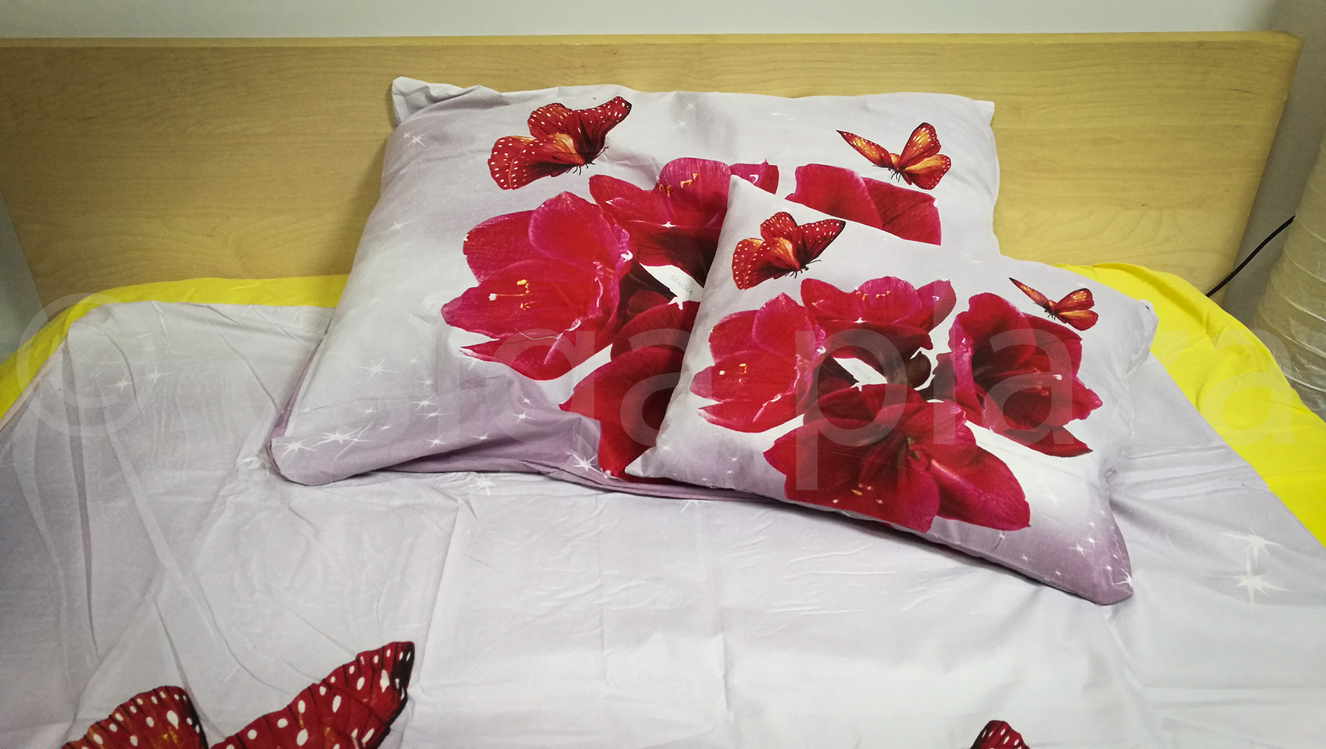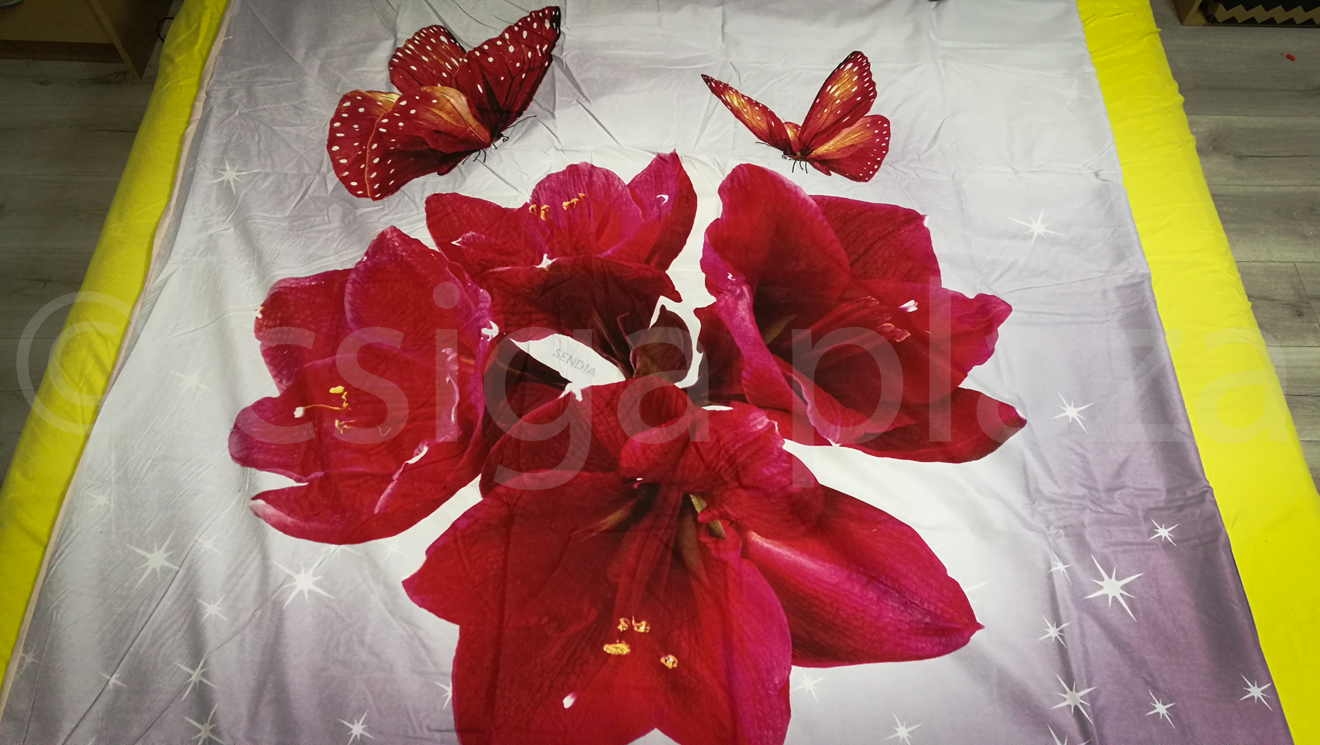 Piros virág és lepke 3 részes ágynemű garnitúra, szimpla paplannal.