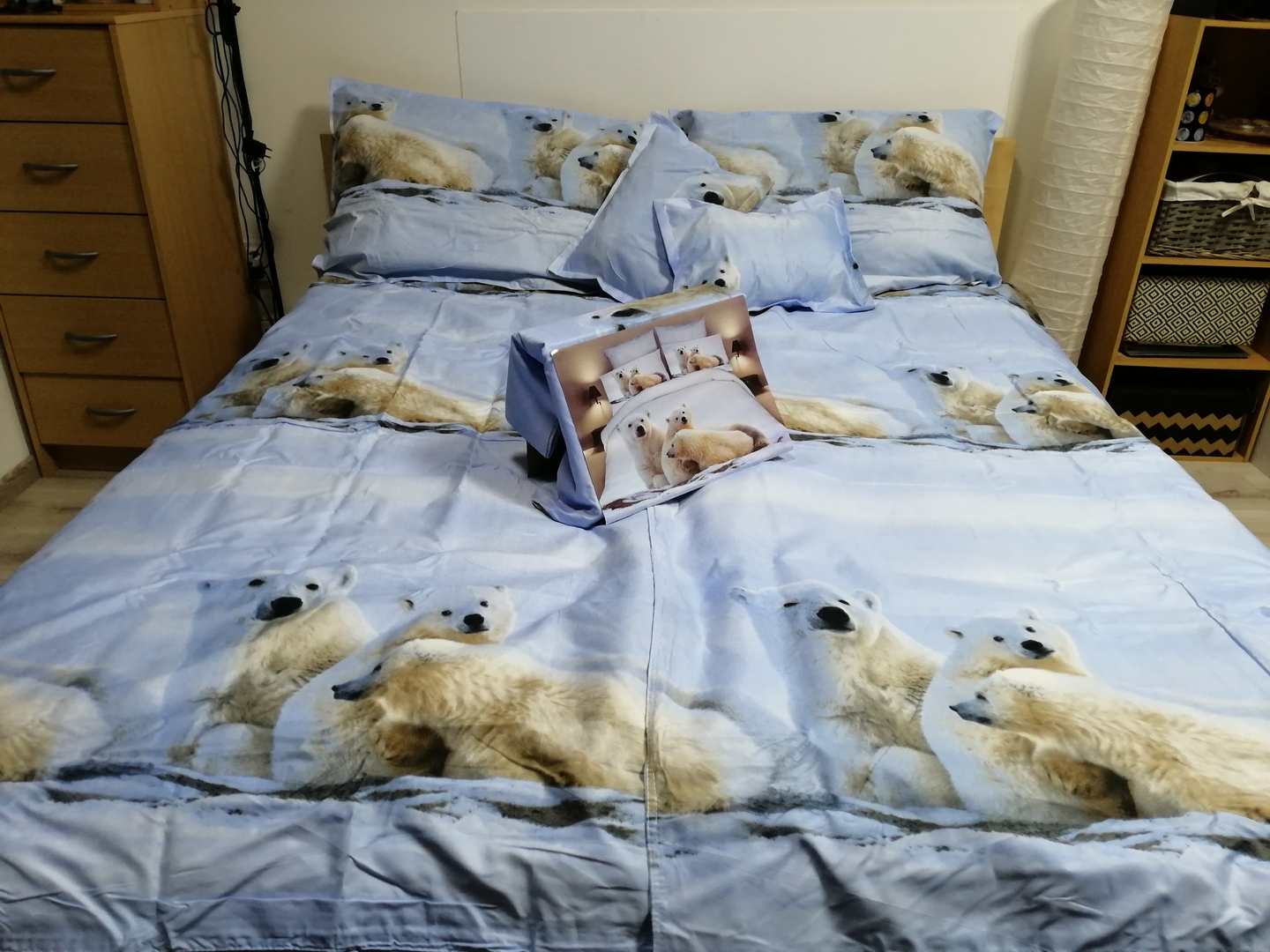 Az ágynemű képe bemutató jellegű, így a fénykép és a valóság közt lehetnek kisebb eltérések. A párnákon a minta nem tökéletes.