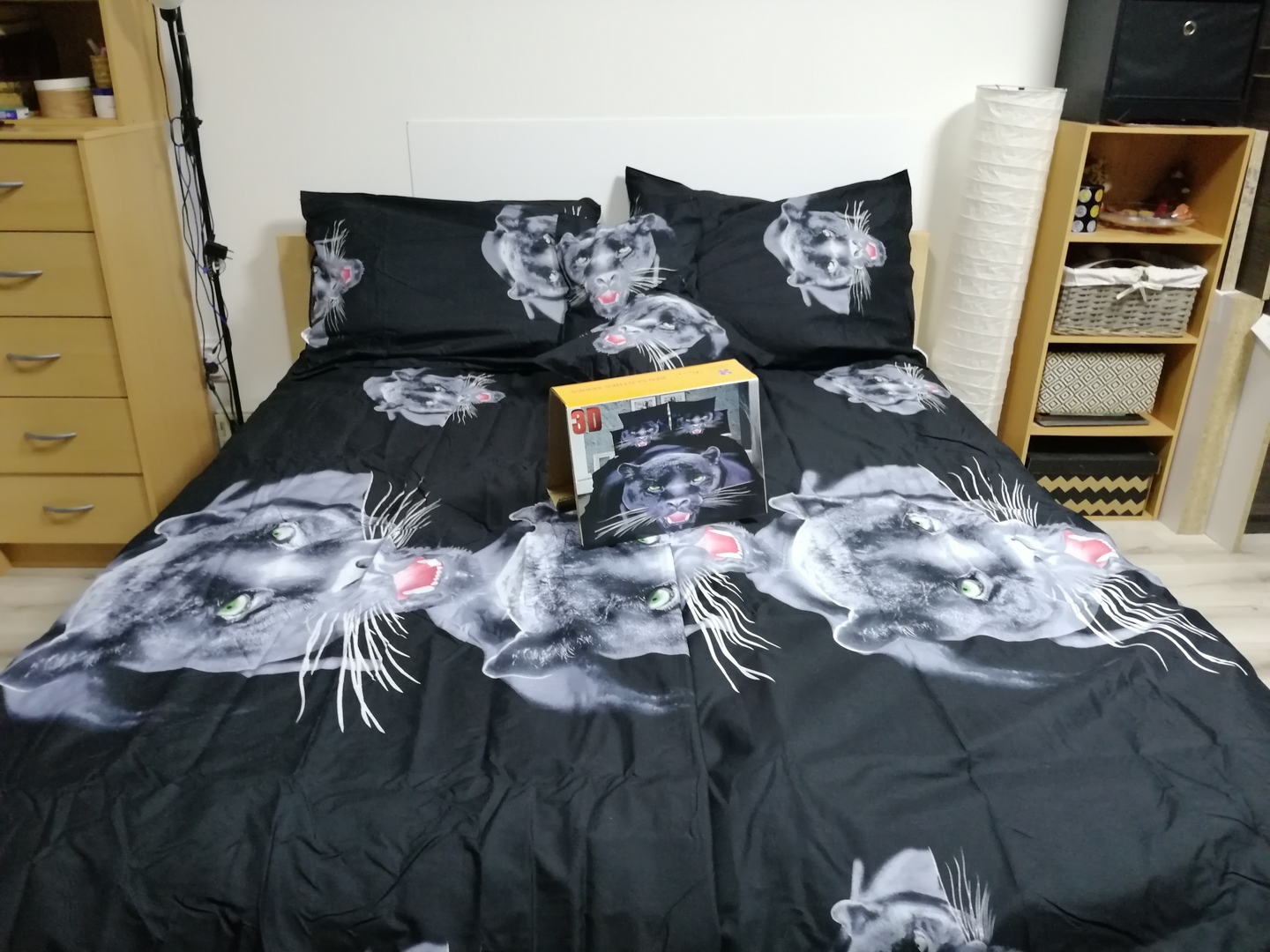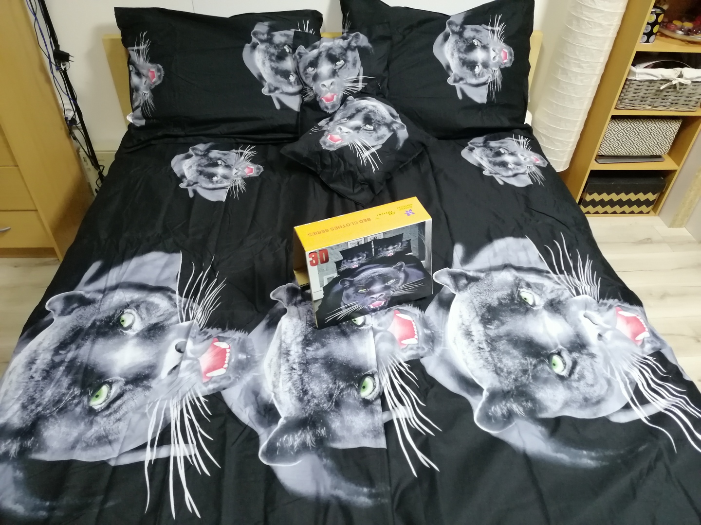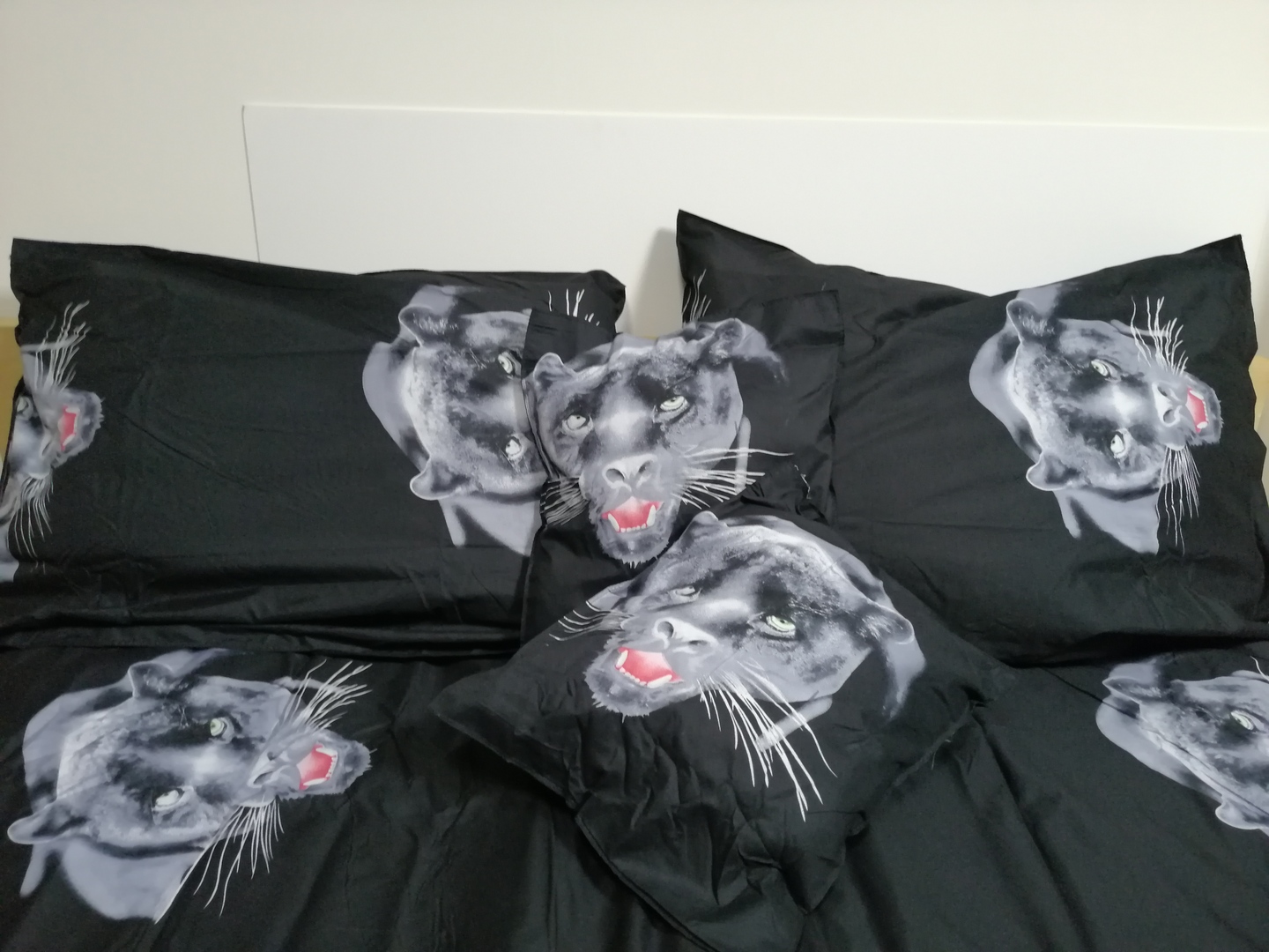 Fekete párducos 7 részes ágynemű szett. 100% pamut.