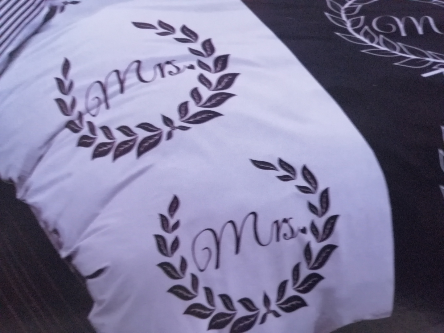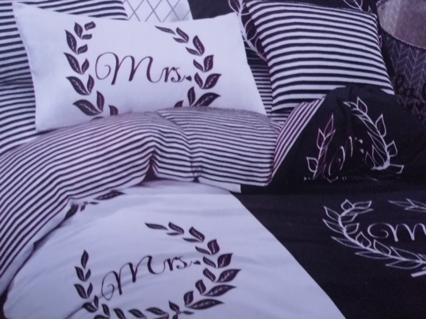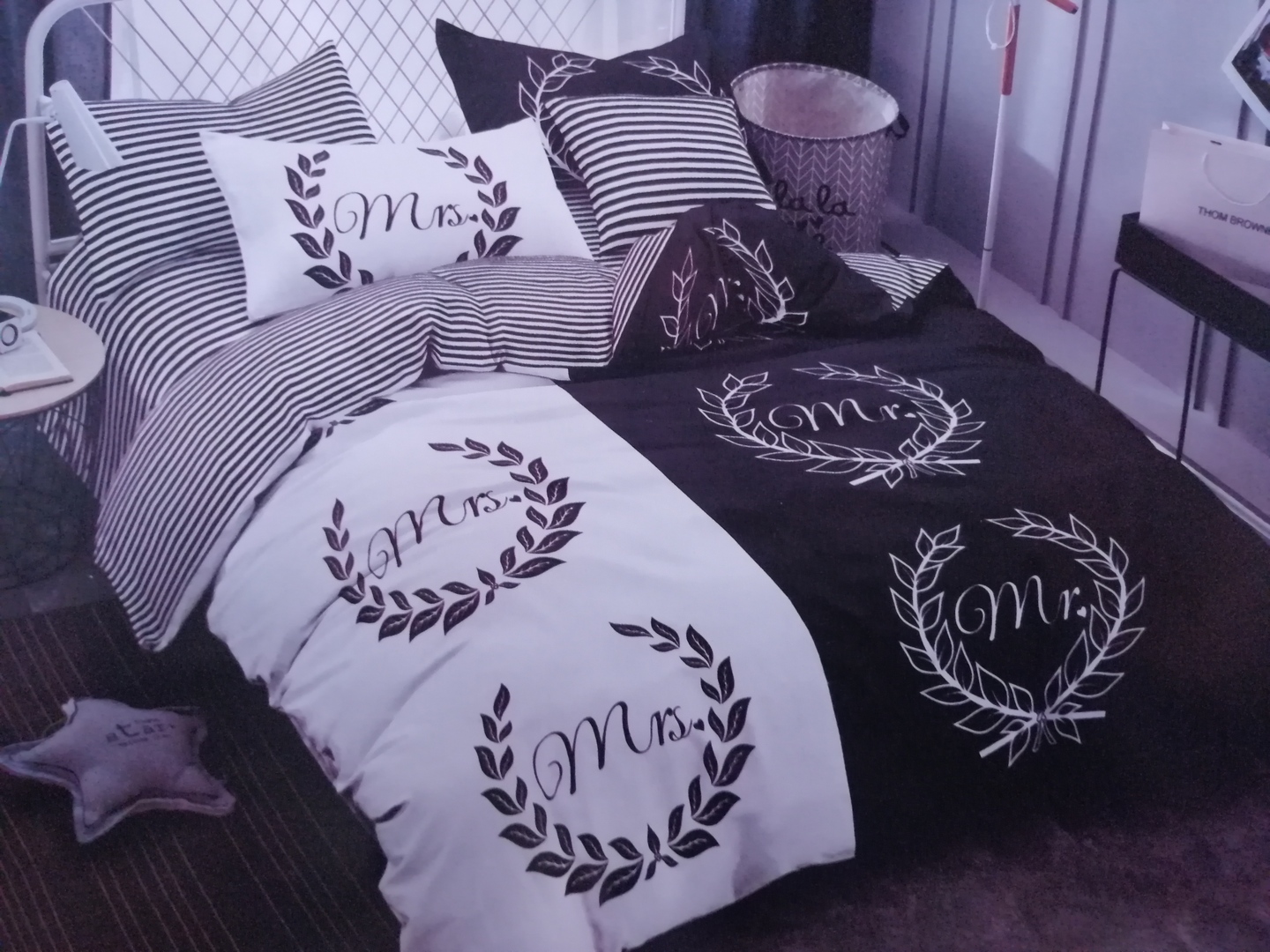 Mr & Mrs - 7 részes ágynemű garnitúra. Csíkos lepedővel. 100% pamut.