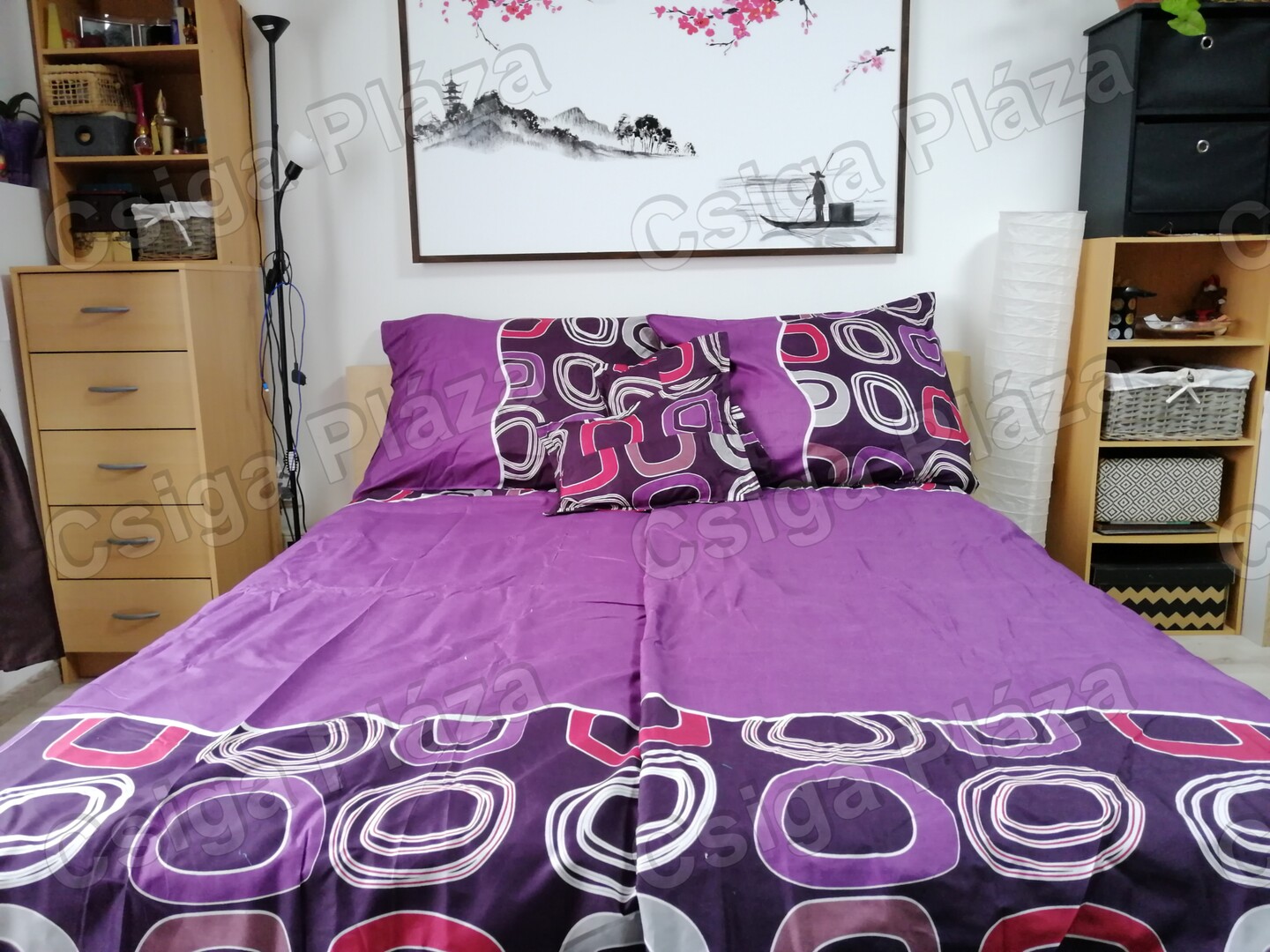 Lila mintás 7 részes ágynemű garnitúra 100% pamut.