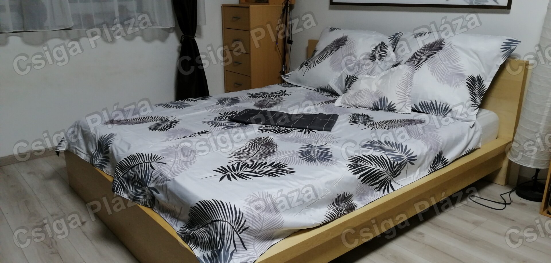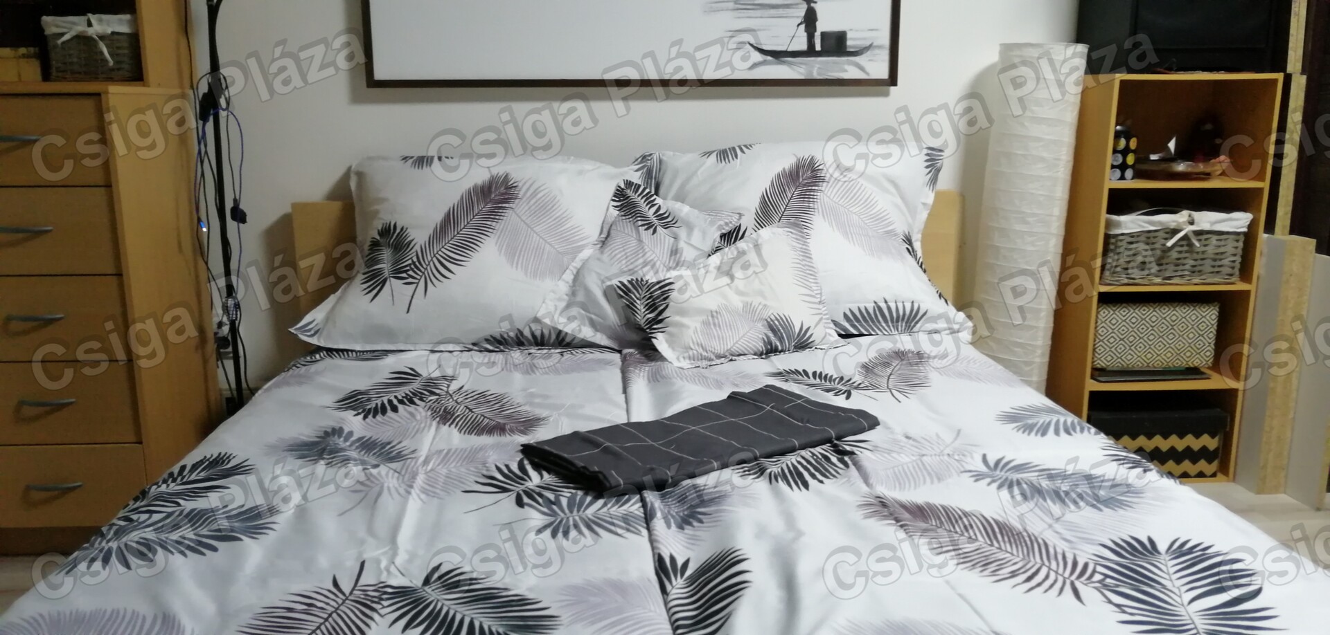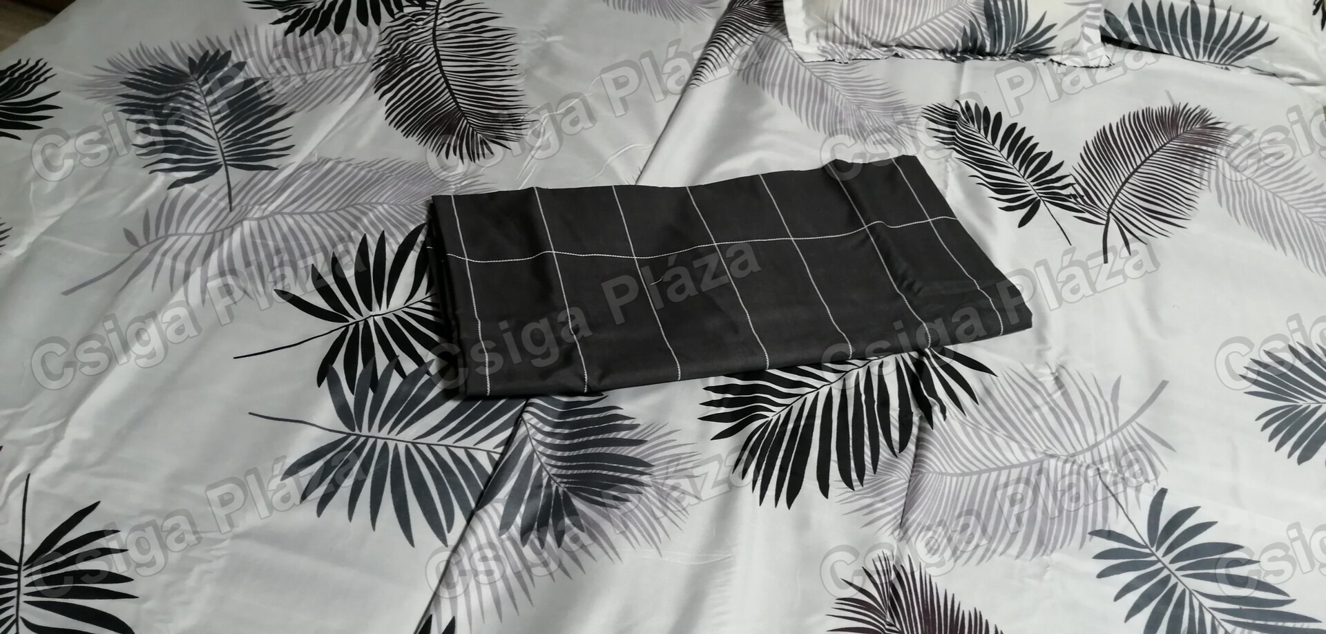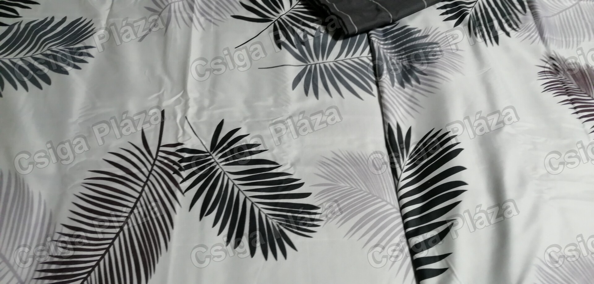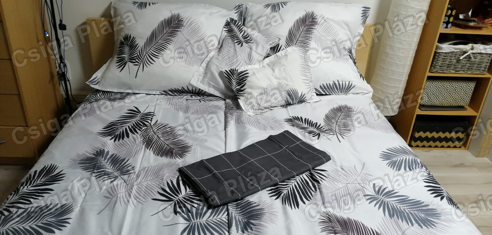 Fekete - fehér leveles 7 részes ágynemű garnitúra