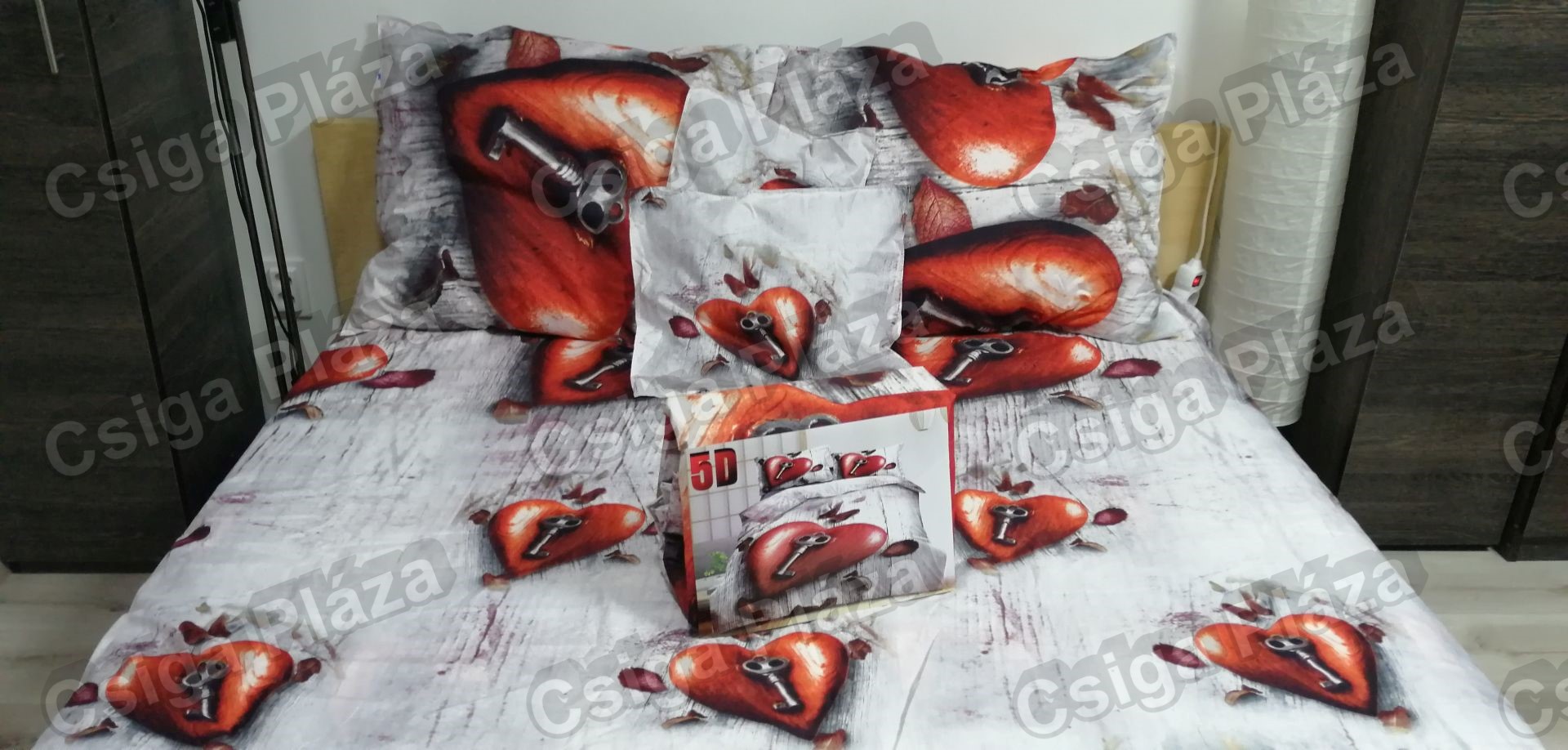Szív + kulcs mintás 6 részes ágyneműhuzat garnitúra 100% pamut.