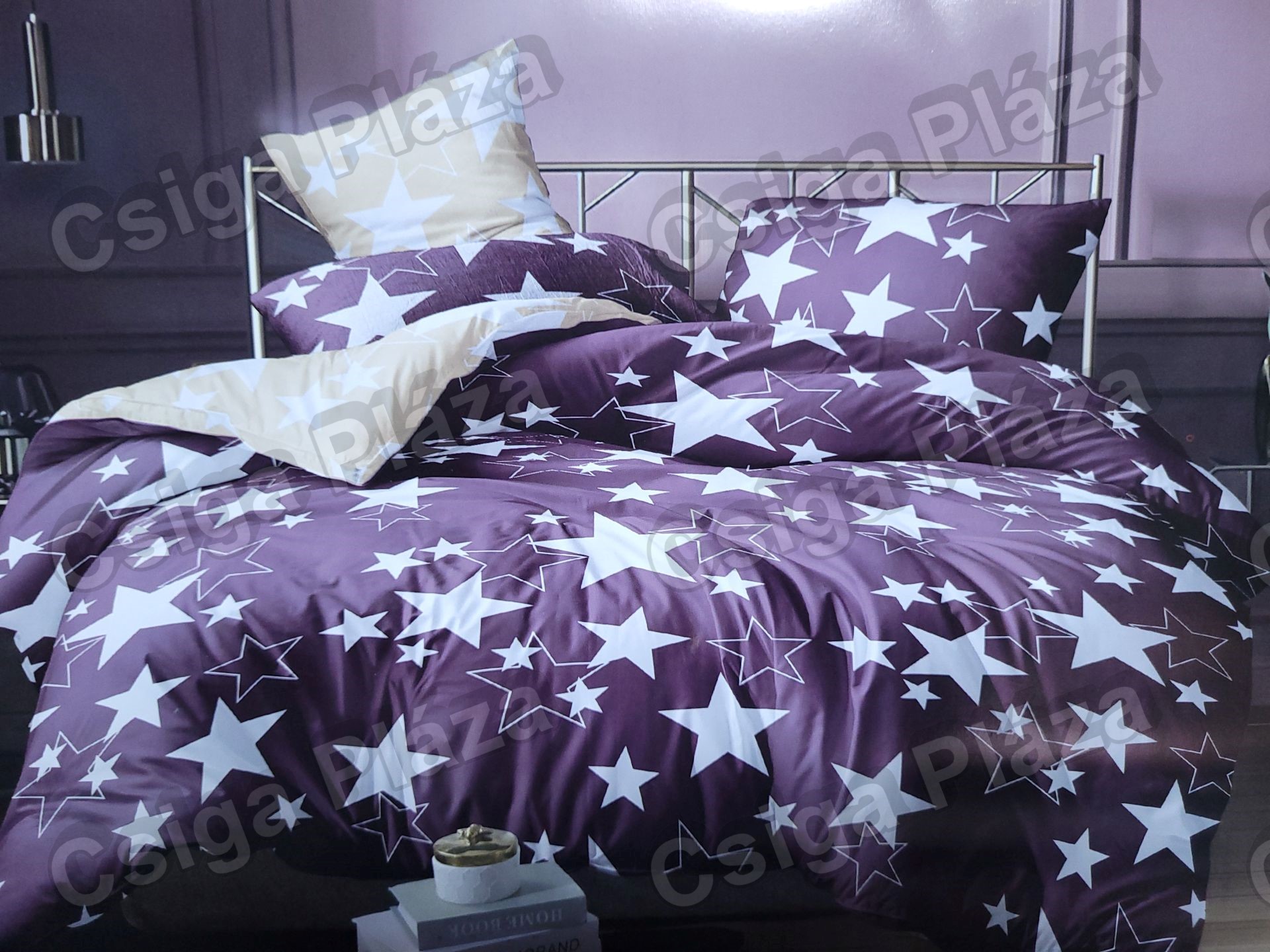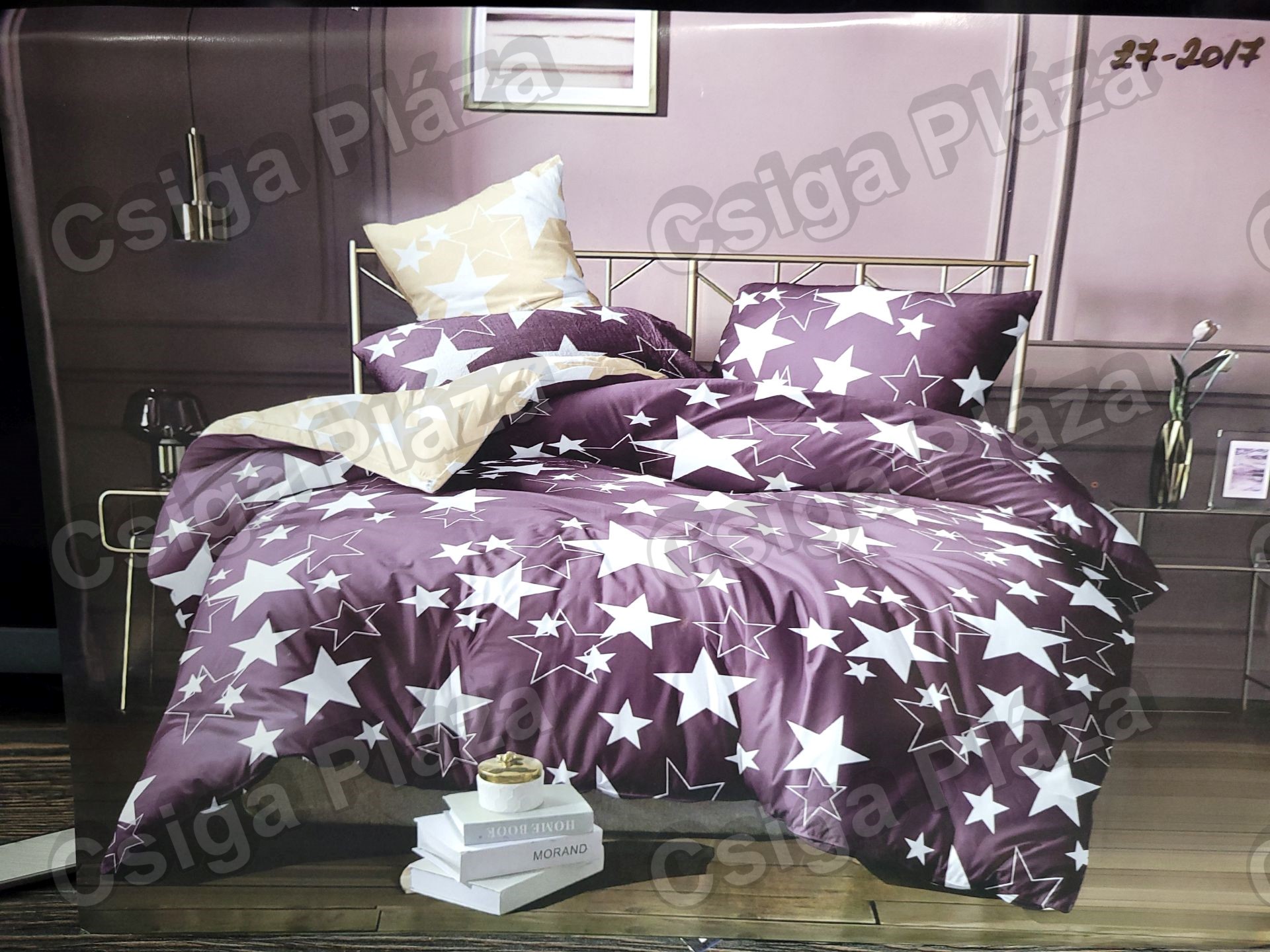 Szürkés lila - fehér csillag 7 részes ágyneműhuzat garnitúra 100% pamut.