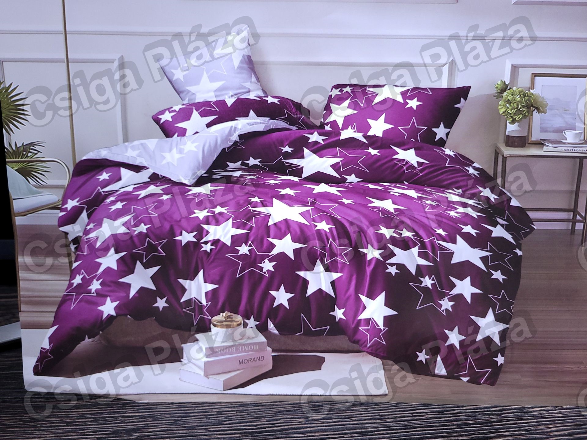Sötétlila- fehér nagy csillag 7 részes ágyneműhuzat garnitúra. 100% pamut.