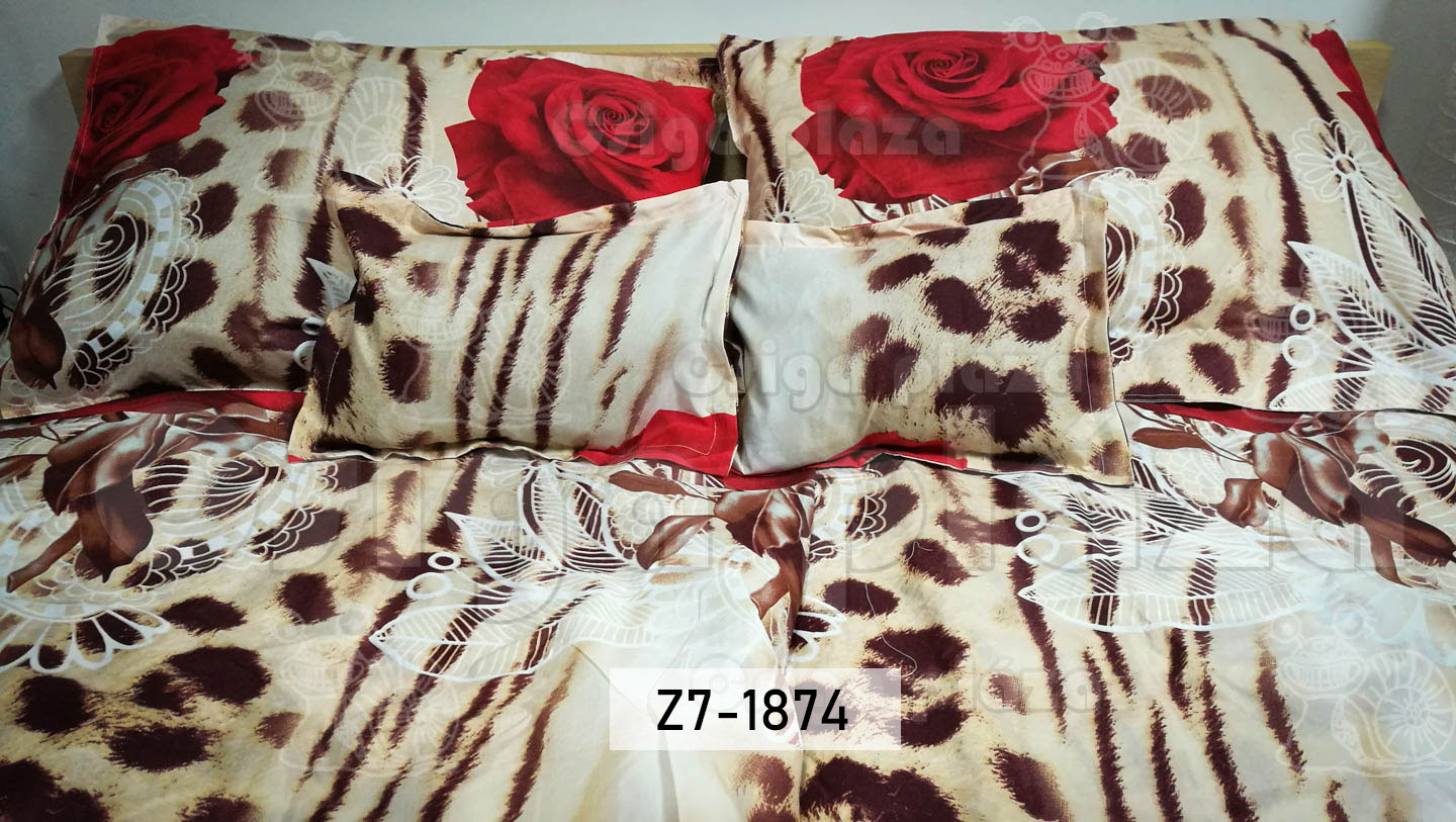 Rózsa, párduc alapon 7 részes ágynemű garnitúra. 100% pamut.