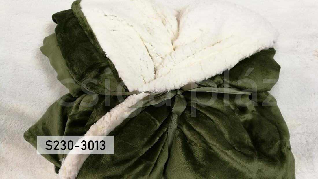 Olajzöld sherpa pléd 200x230cm