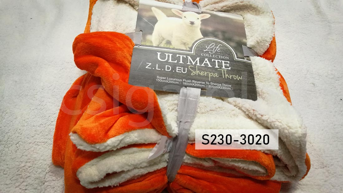 Narancssárga sherpa pléd 200x230cm, bundás takaró