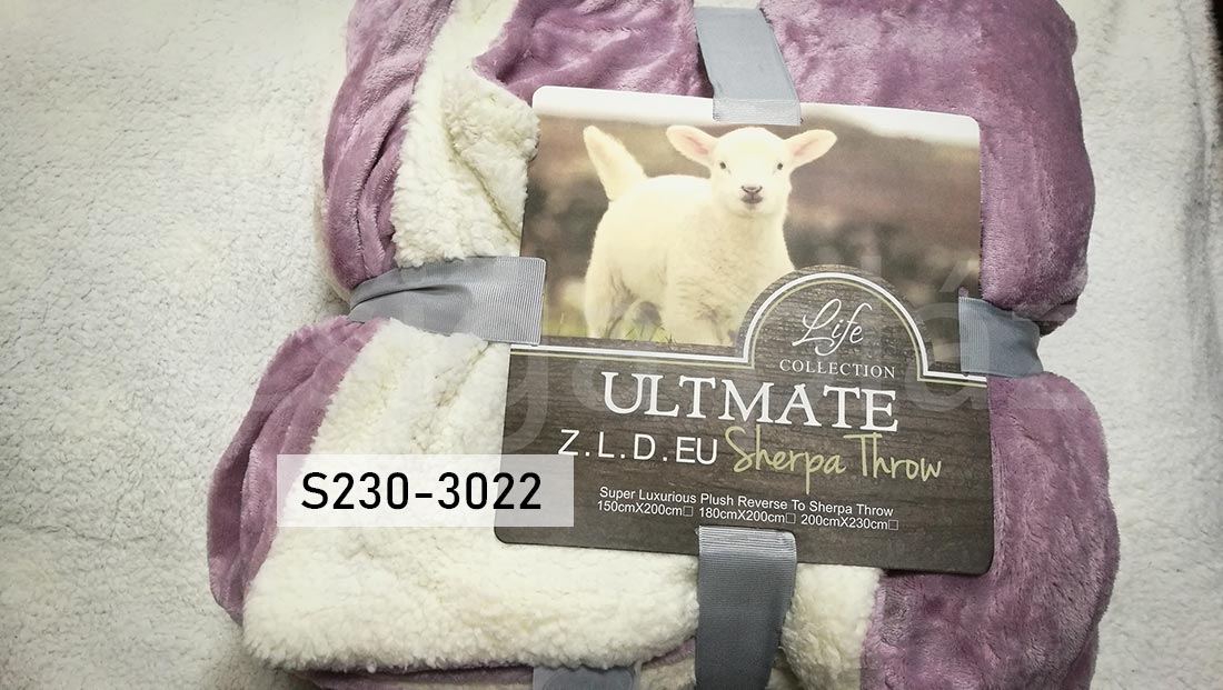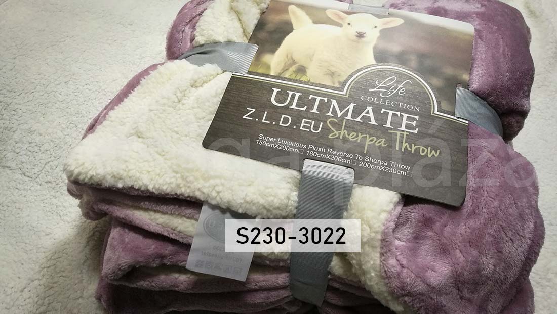 Világoslila sherpa pléd 200x230cm, bundás takaró