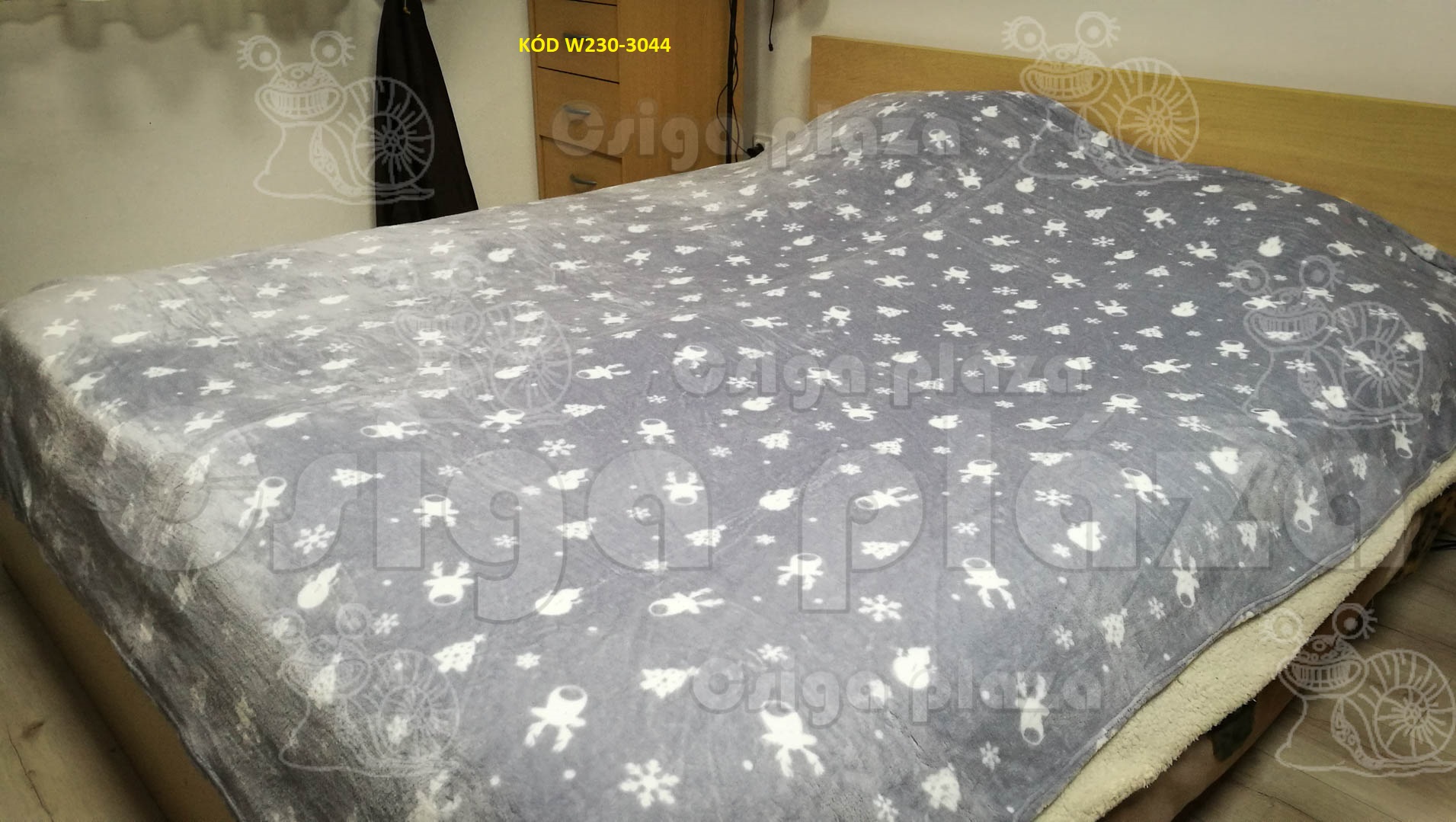 Szürke - Szarvas, hóember- fenyő plüss pléd