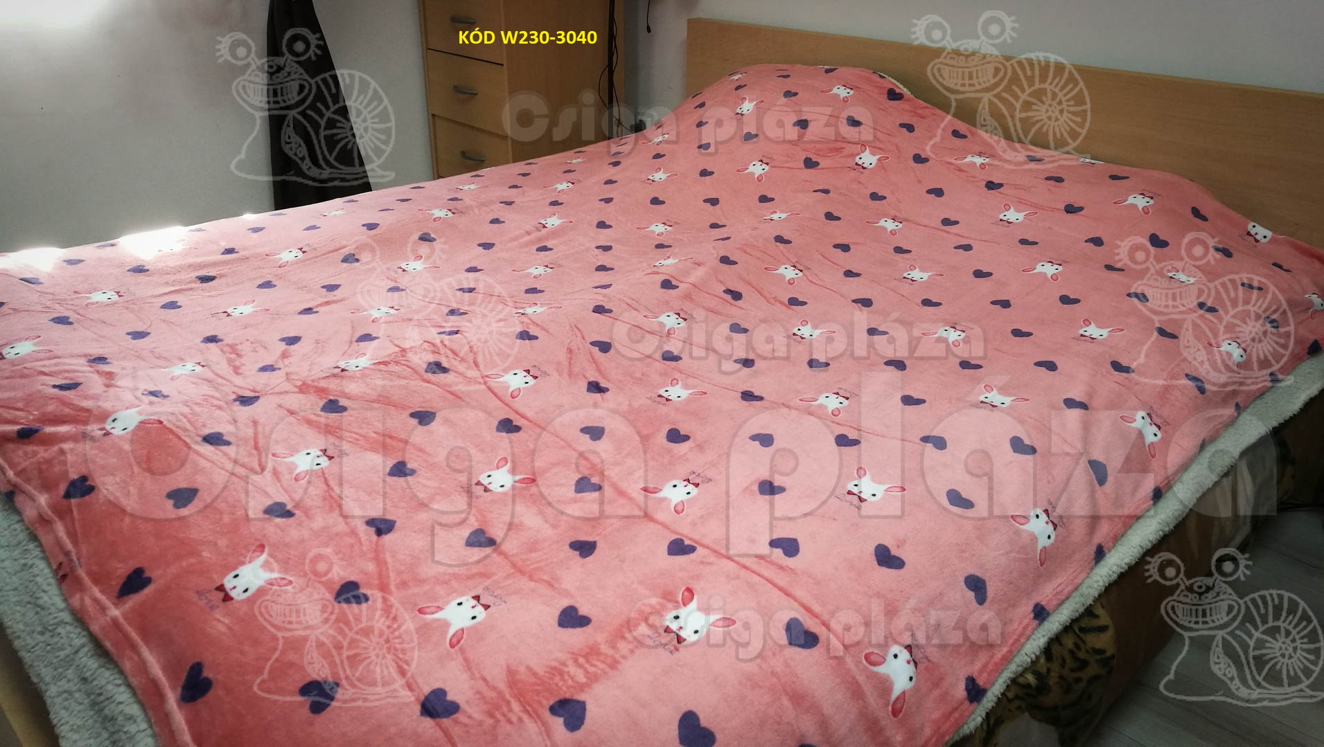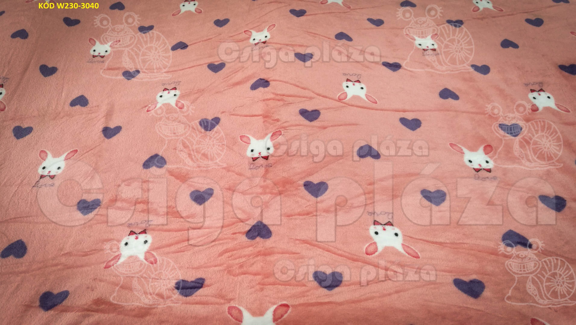 Barackos rózsaszínes nyulas plüss pléd 200x230 cm