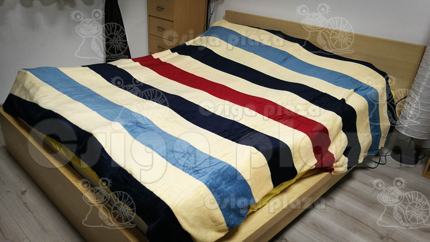 Csíkos vaj-kék-piros mintás plüss pléd 200x230 cm