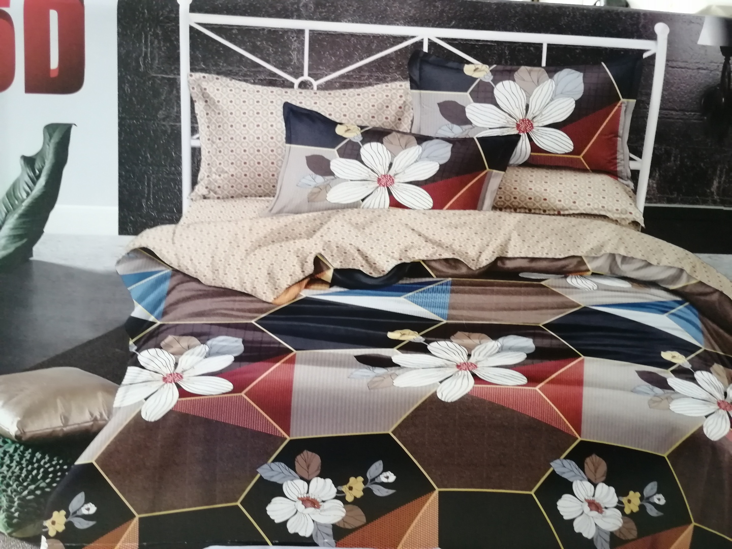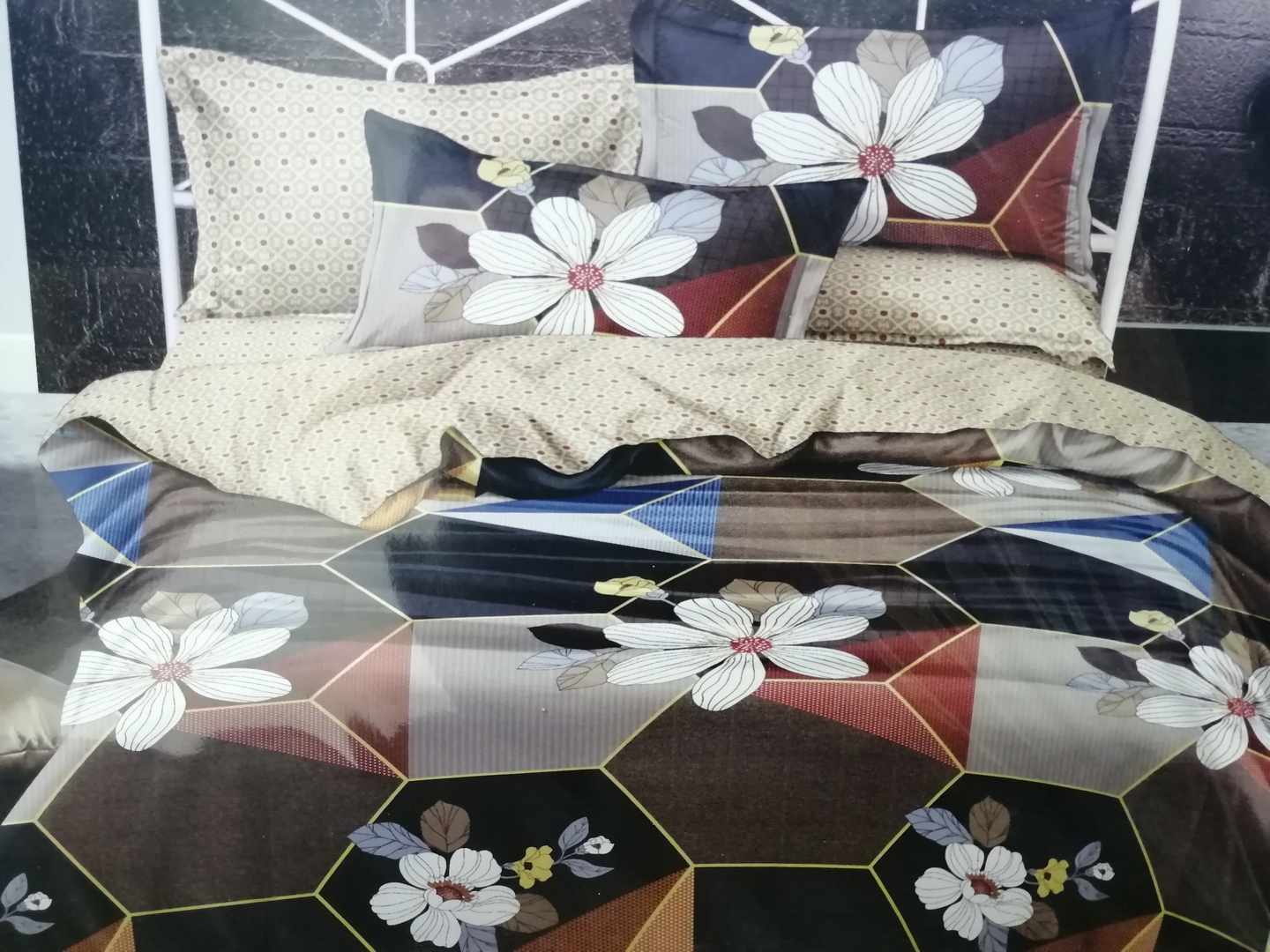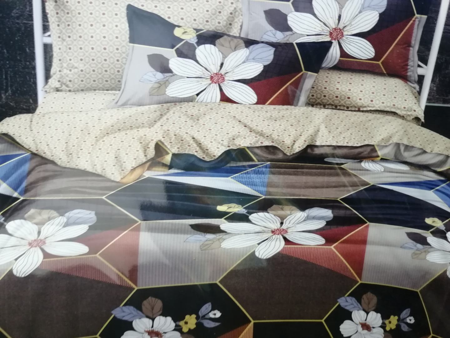 Absztrakt-hatszög-virág 7 részes ágynemű garnitúra 100% pamut.