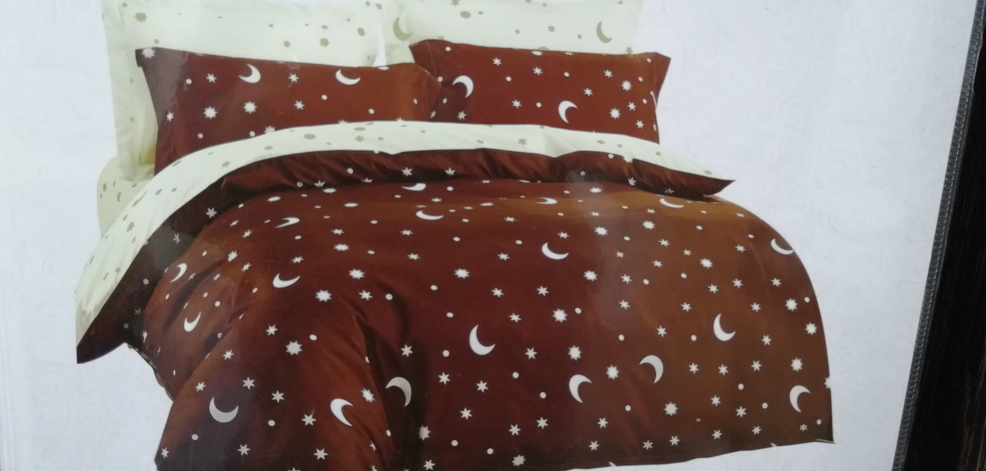 Sötétbarna-Vaj hold-csillag 7 részes ágynemű garnitúra Sötétbarna-Vaj hold-csillag 7 részes ágynemű garnitúra