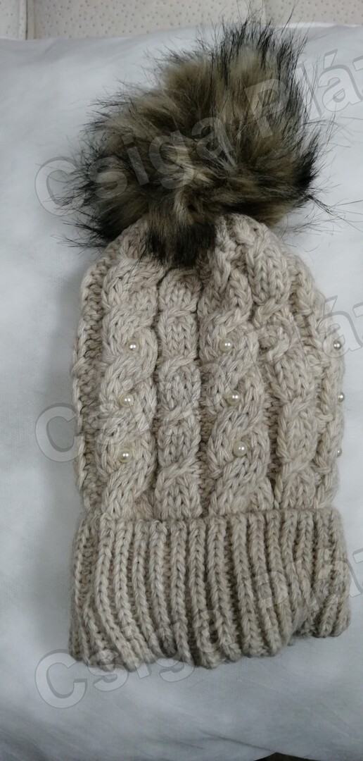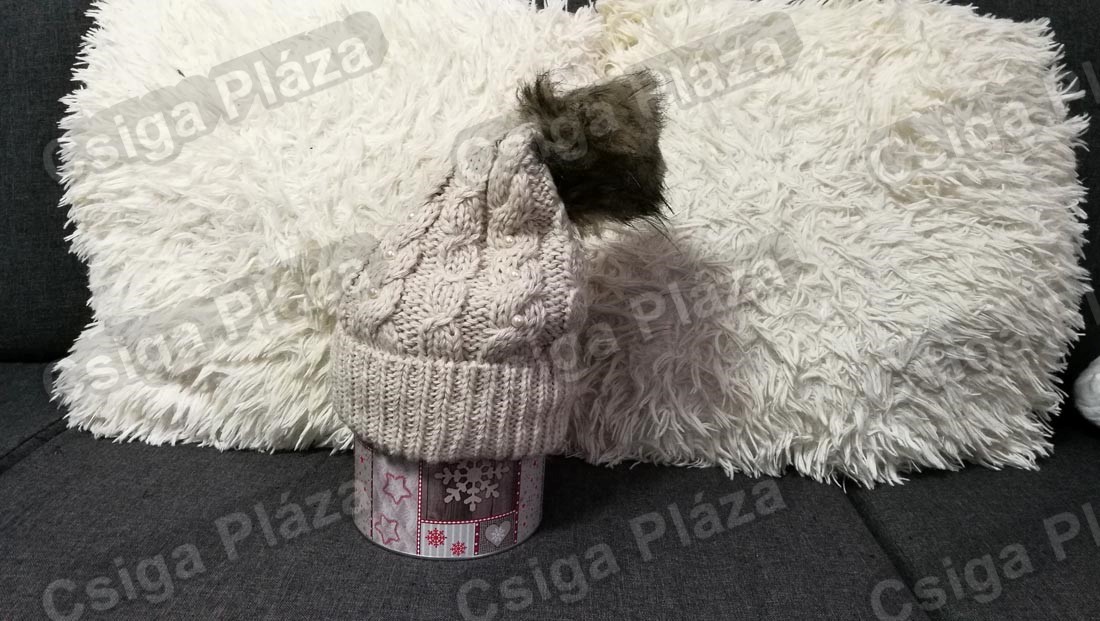 Krémszínű sapka 1 bojtos bélelt