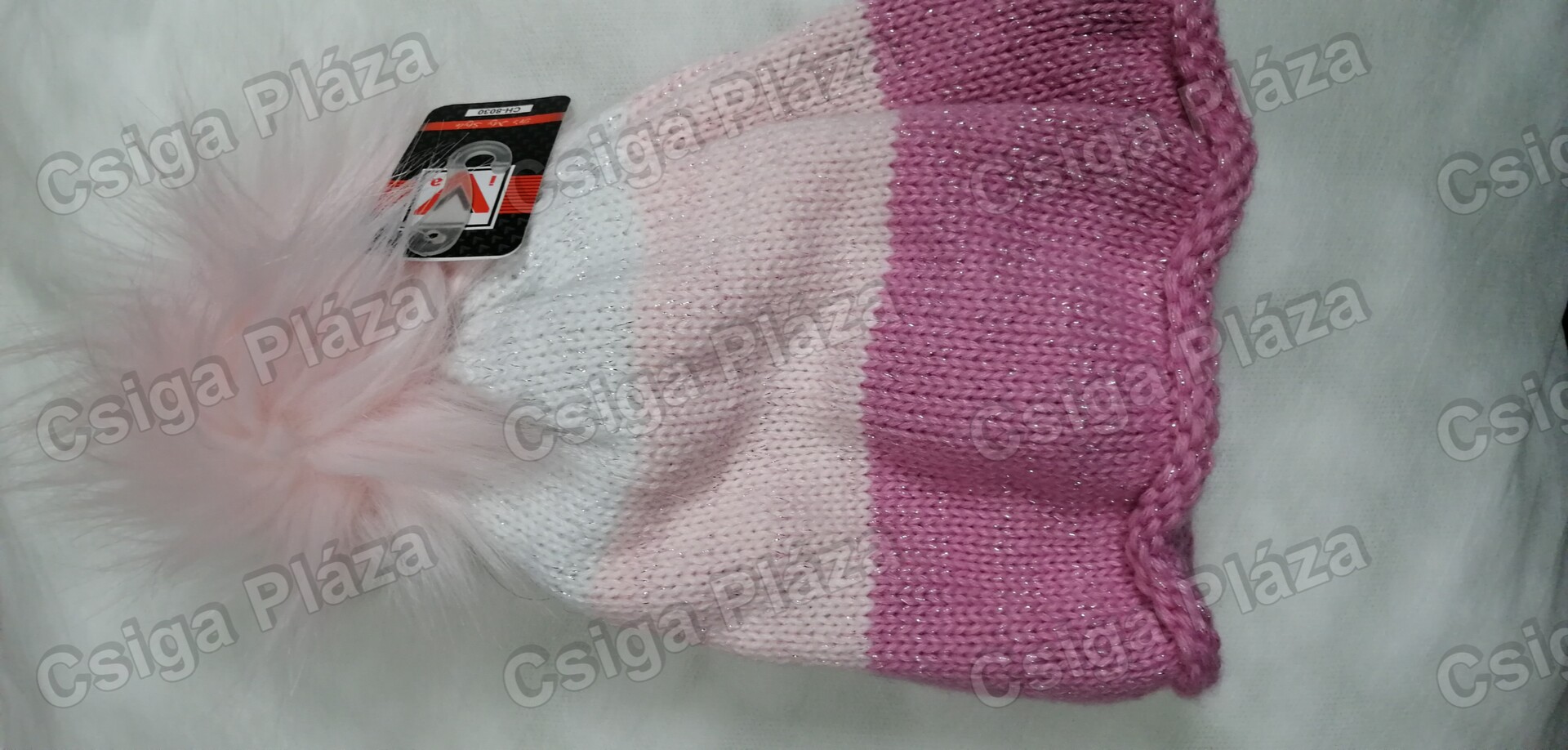 Csíkos 1 bojtos (ciklámen, rózsaszín, fehér) fehér bojtos sapka