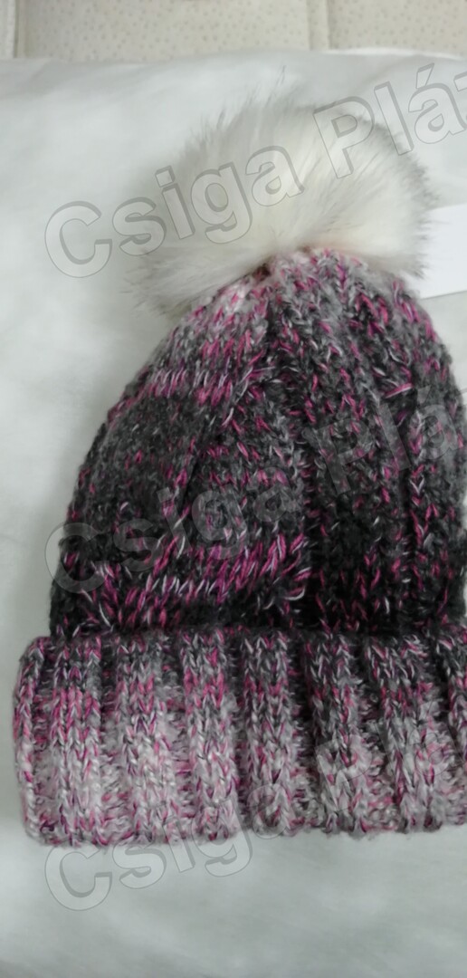 Rózsaszín cirmos 1 bojtos sapka, bélelt