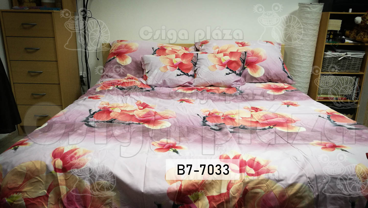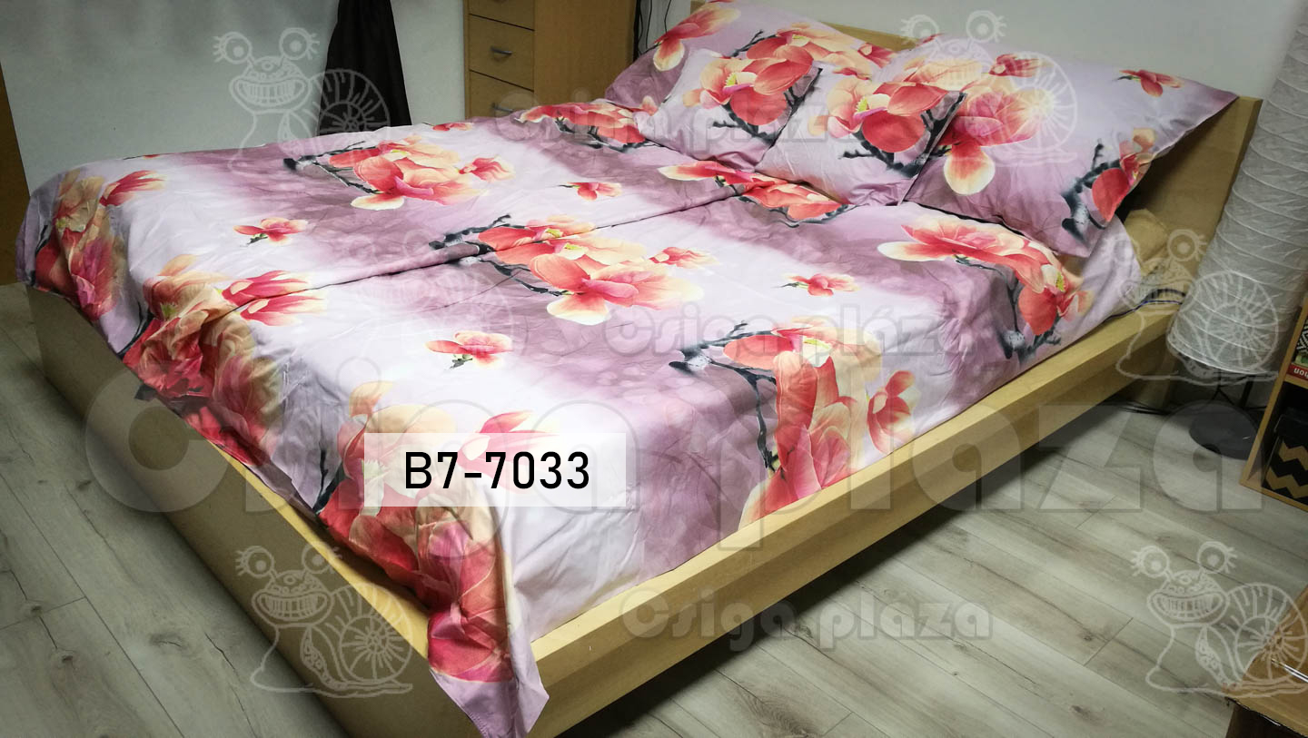 Magnólia, rózsaszín alapon 7 részes ágynemű garnitúra