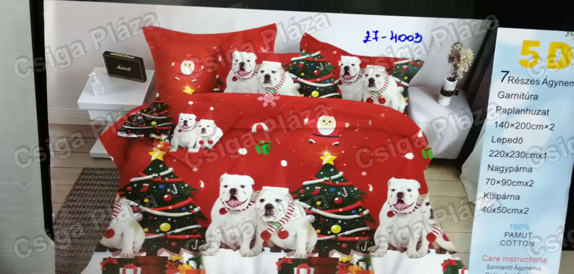 Karácsonyos 7 részes ágynemű garnitúra bulldog 100% pamut vékonyabb típus