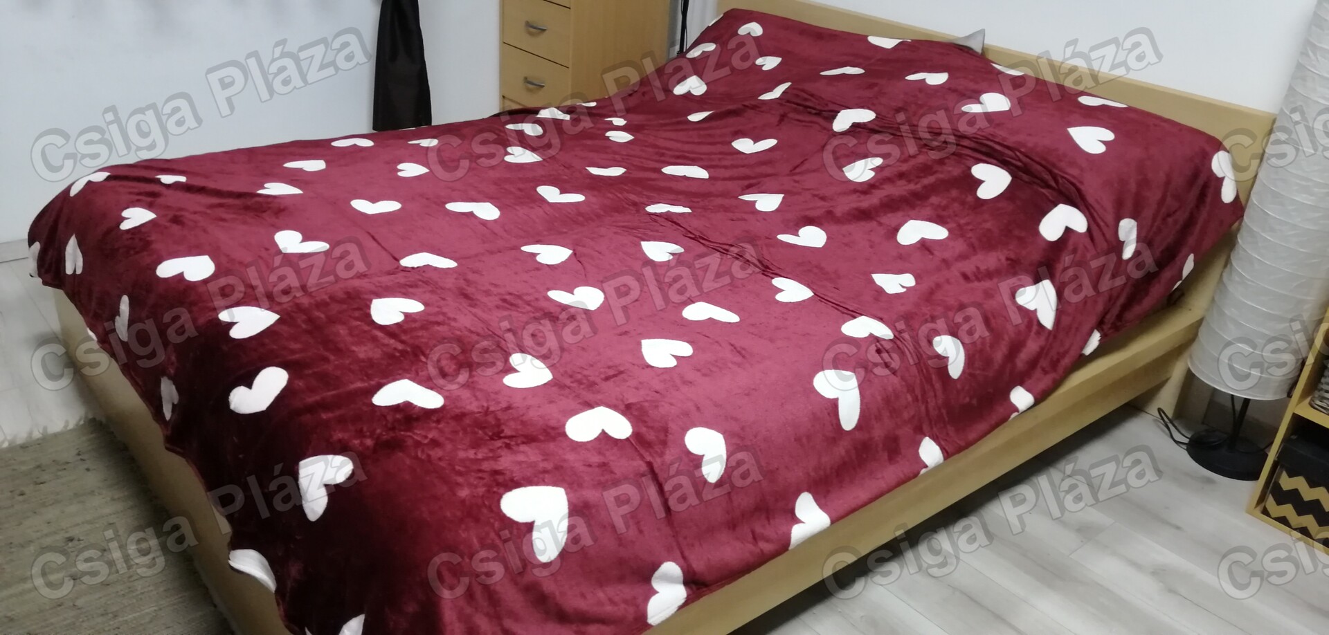 Bordó szíves 200*230 cm wellsoft, plüss pléd