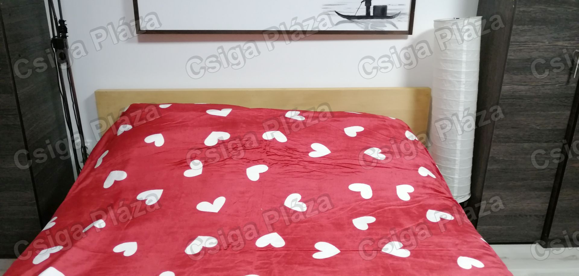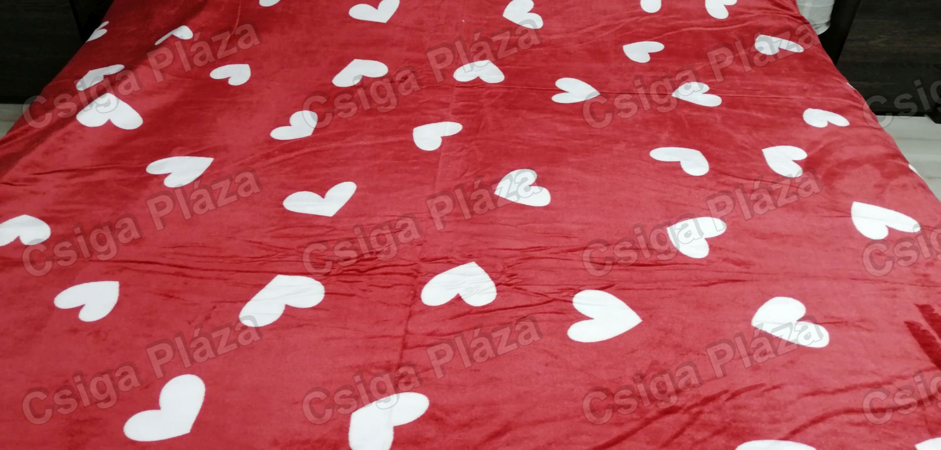 Meggypiros szíves 200*230 cm wellsoft, plüss pléd