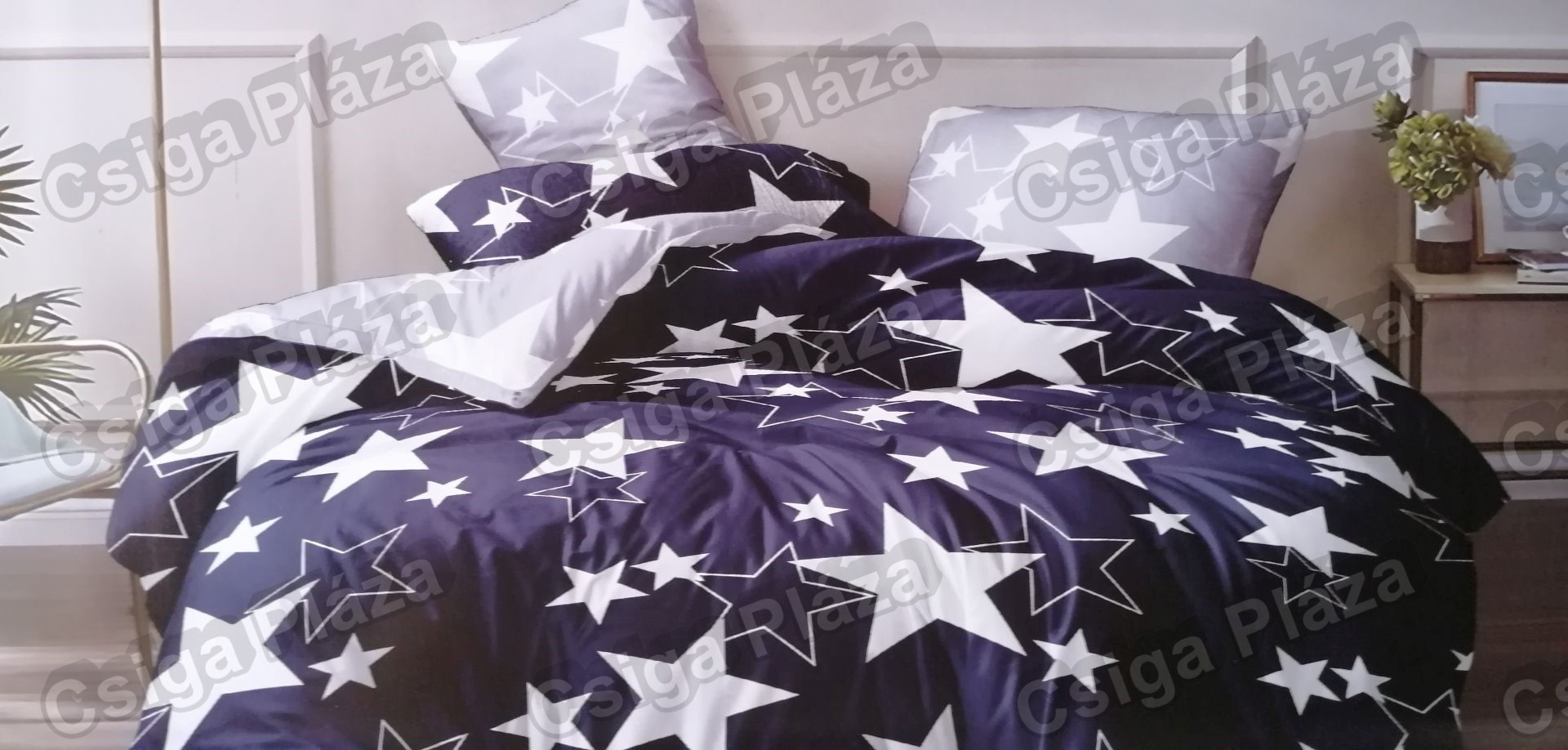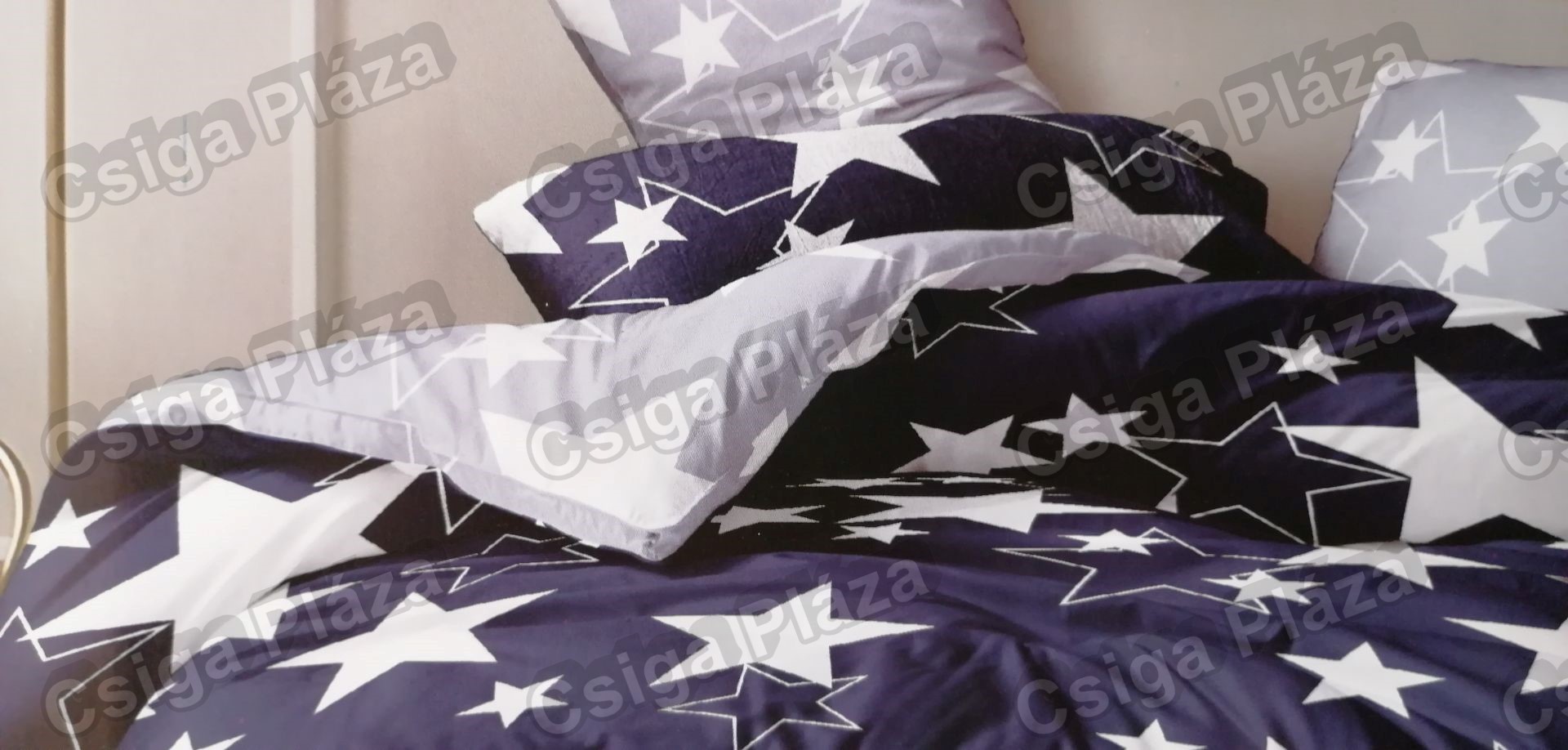 Kék - fehér nagy csillag 7 részes ágyneműhuzat garnitúra. 100% pamut.