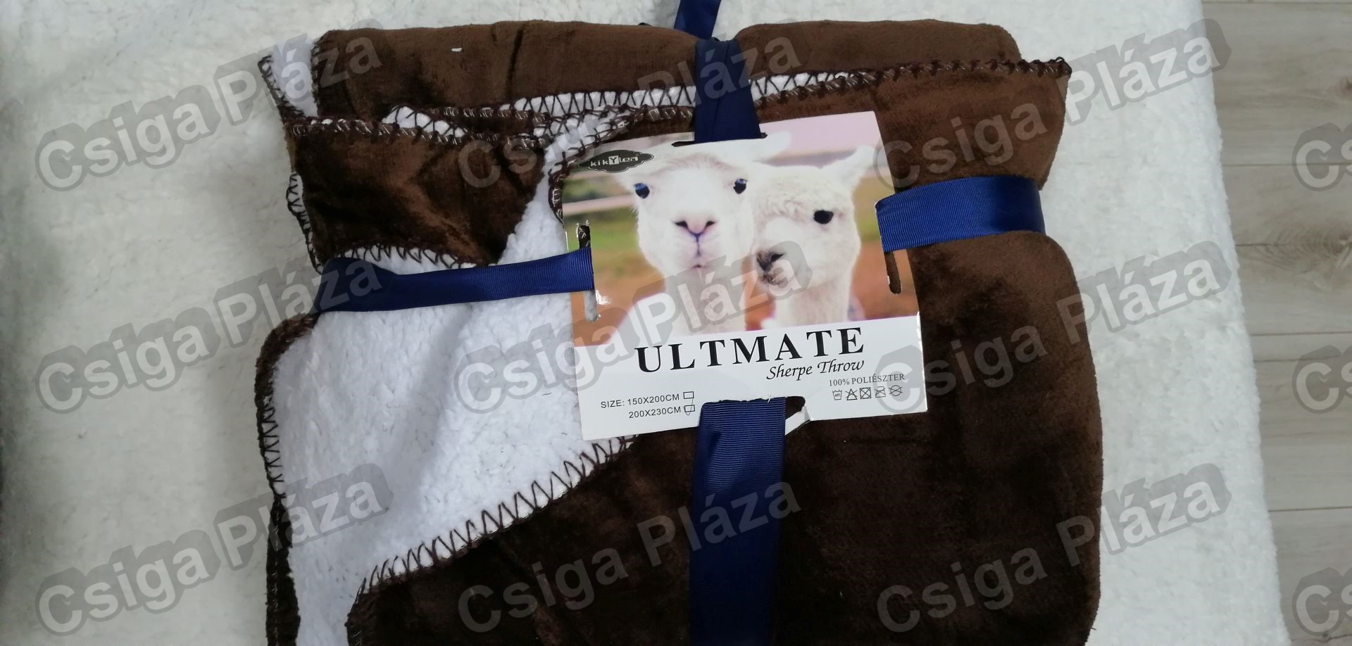 Varrott szélű sötétbarna sherpa pléd 200x230cm