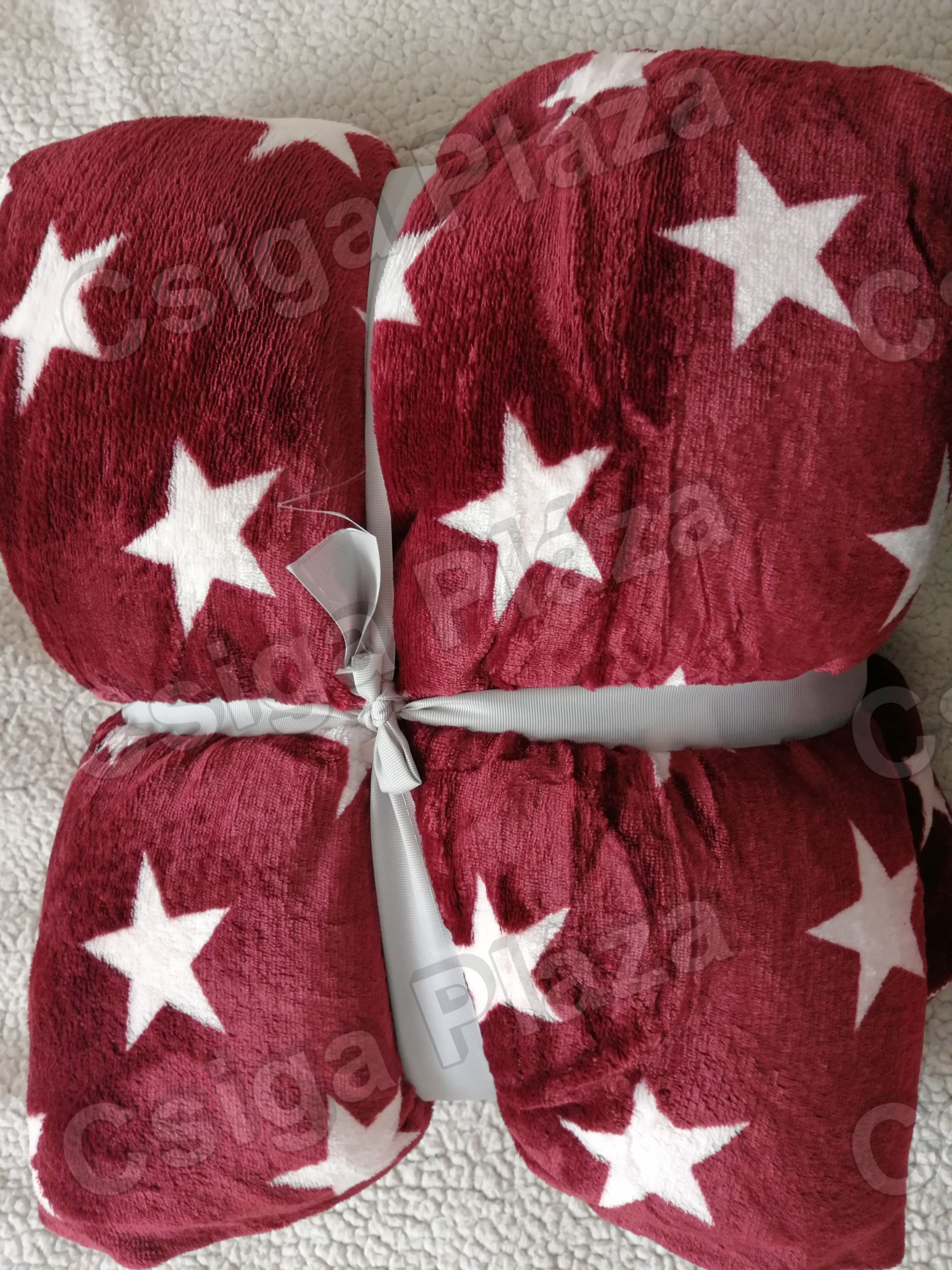 Bordó csillagos vastag sherpa takaró, ágytakaró 200x230cm