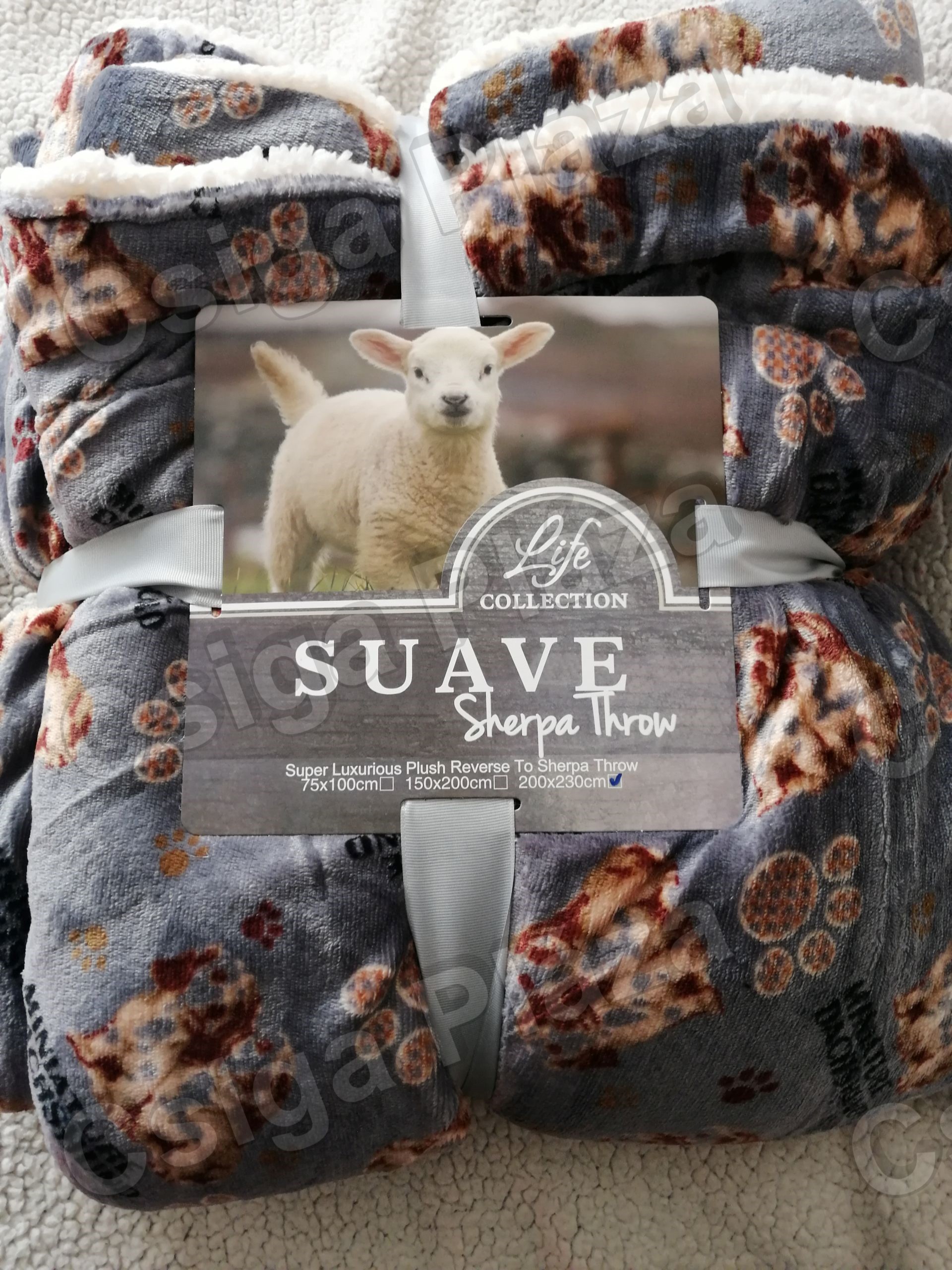 Kutyás tappancsos vastag sherpa pléd 200x230cm Kutyás tappancsos vastag sherpa pléd 200x230cm