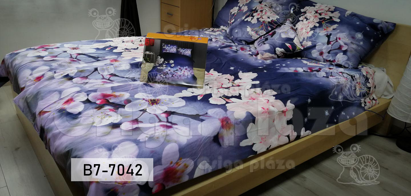 Cseresznyevirág - kék alapon 7 részes ágynemű garnitúra