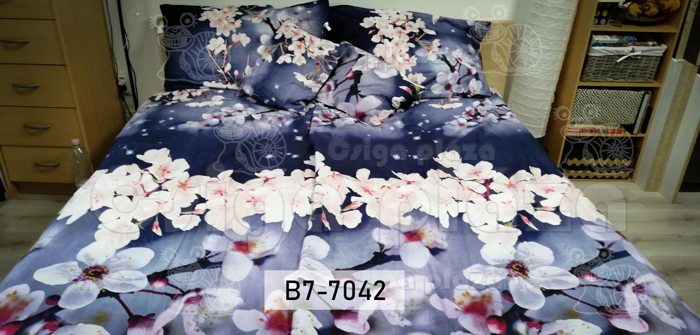 Cseresznyevirág - kék alapon 7 részes ágynemű garnitúra.