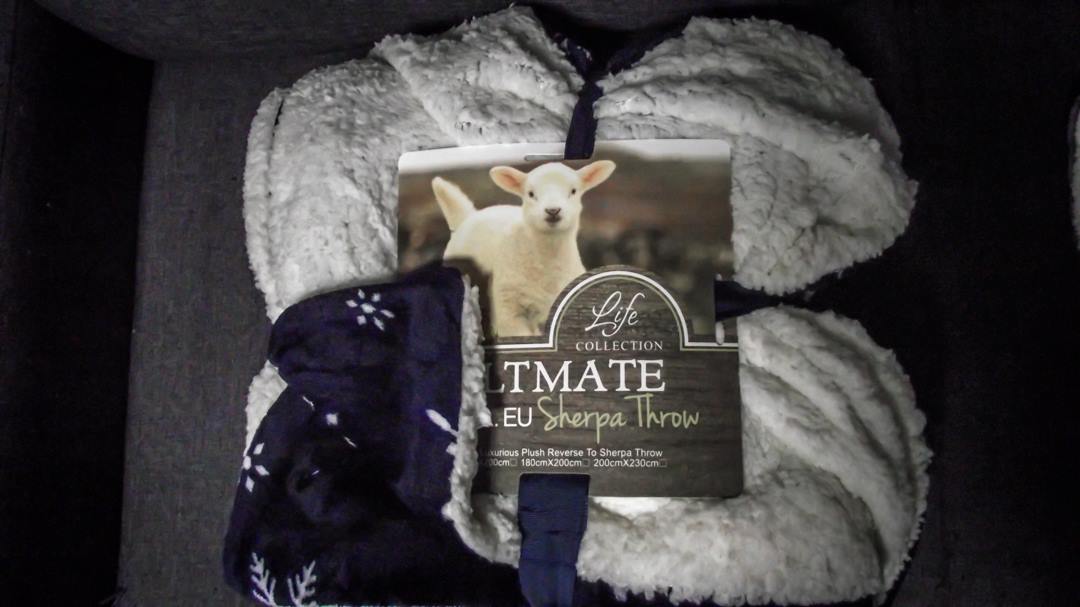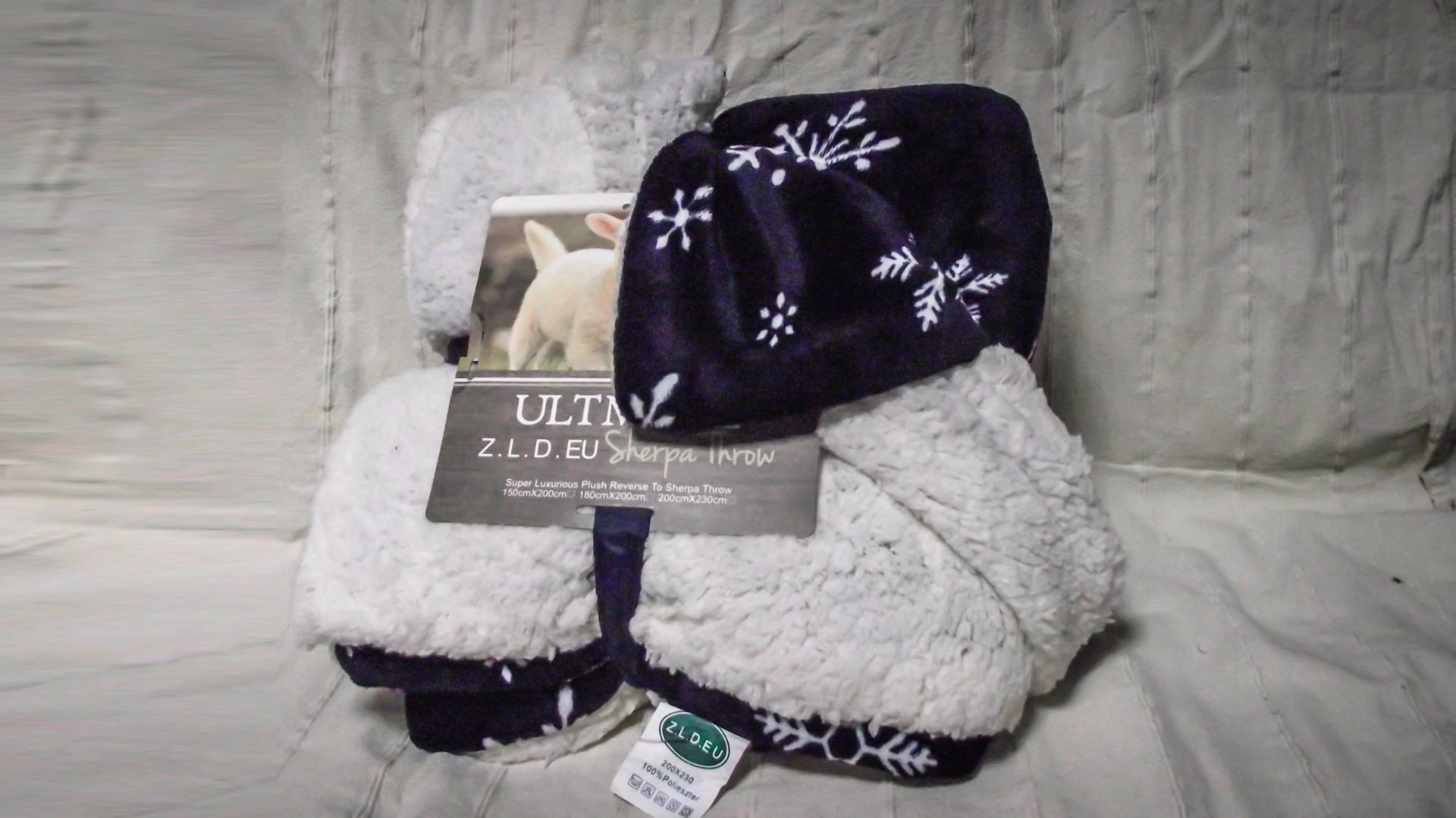 Kék színű, hópihés kétoldalú plüss pléd. Mérete: 200x230 cm. Sherpa plédnek azért hívják, mert mindkét oldala negyon meleg. Egyik oldala plüss, másik oldala "BÁRÁNY" :)