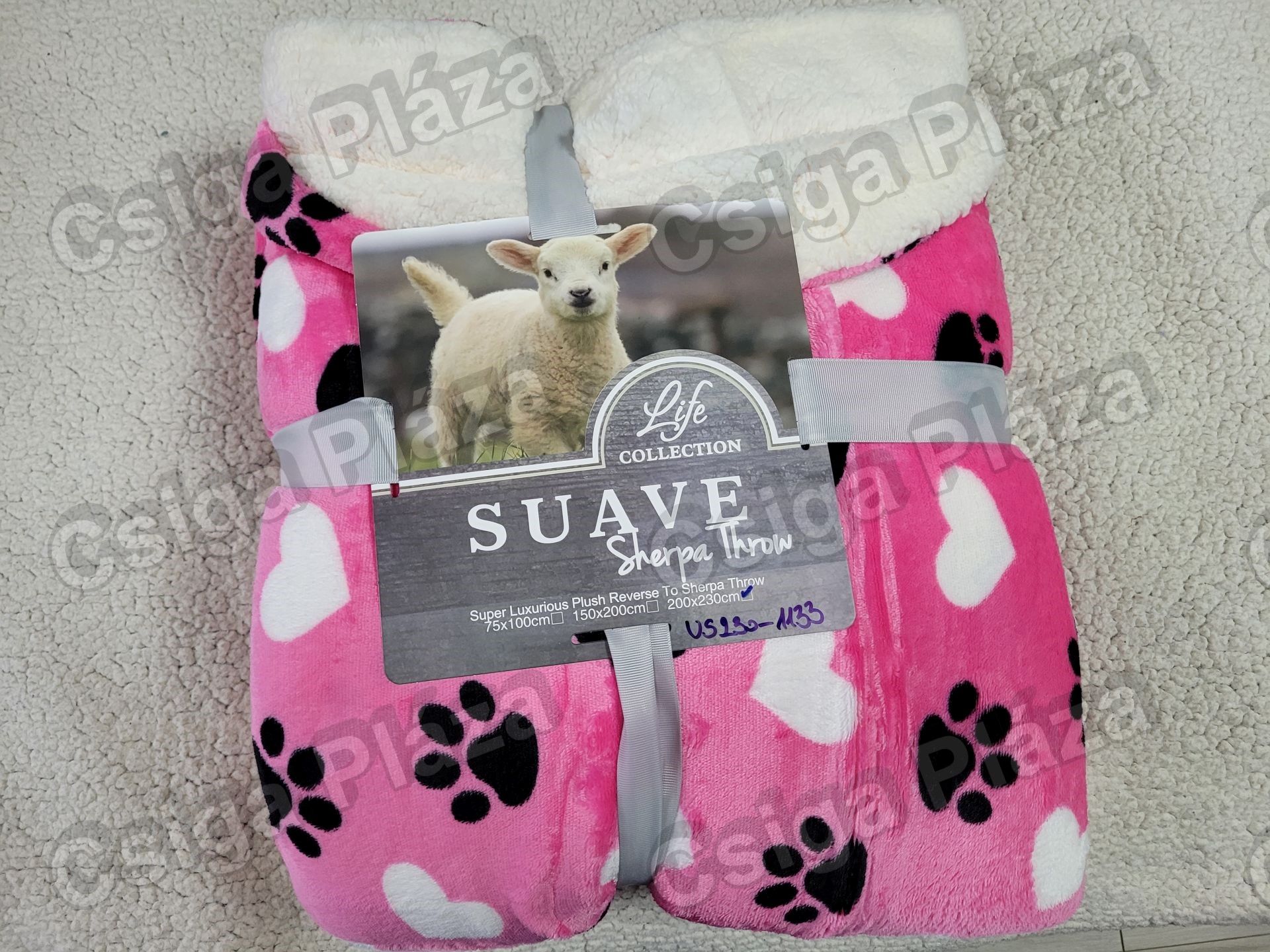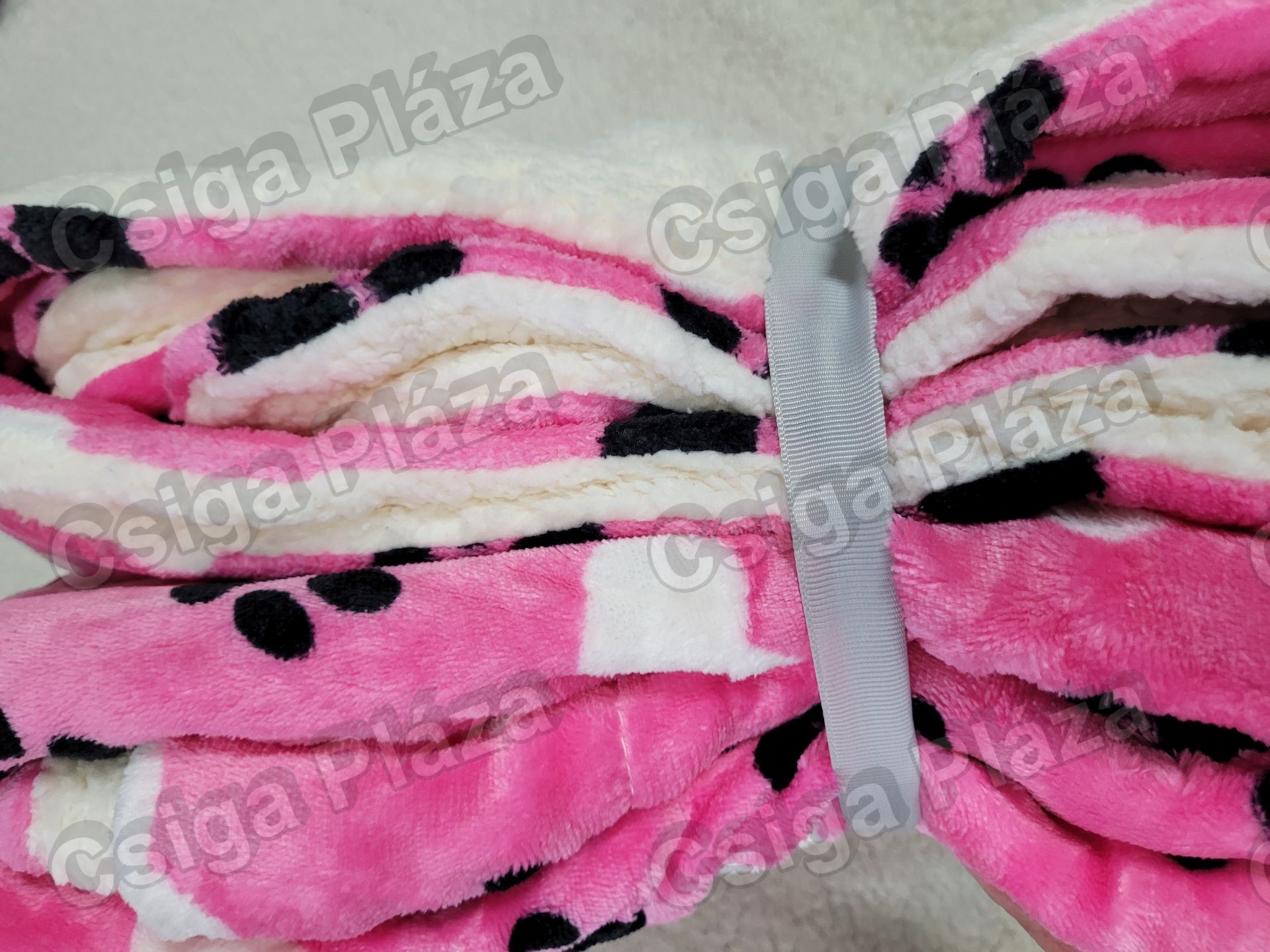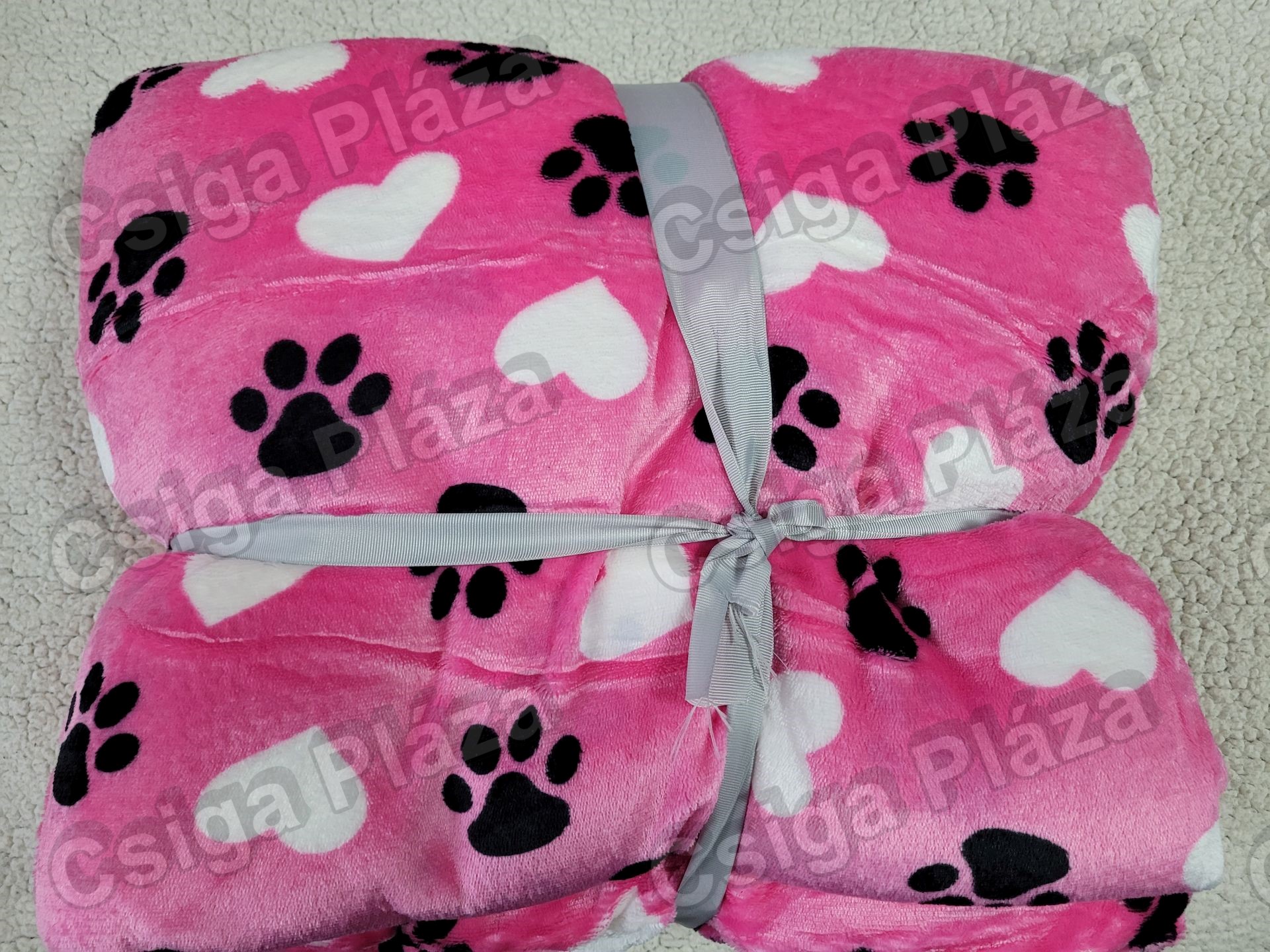 Rózsaszín szív +tappancs mintás vastag sherpa takaró, ágytakaró 200x230cm