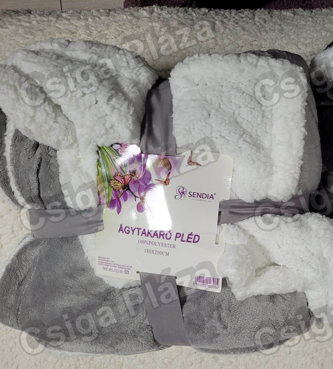 Világosszürke 180*200 cm sherpa pléd, bundás takaró