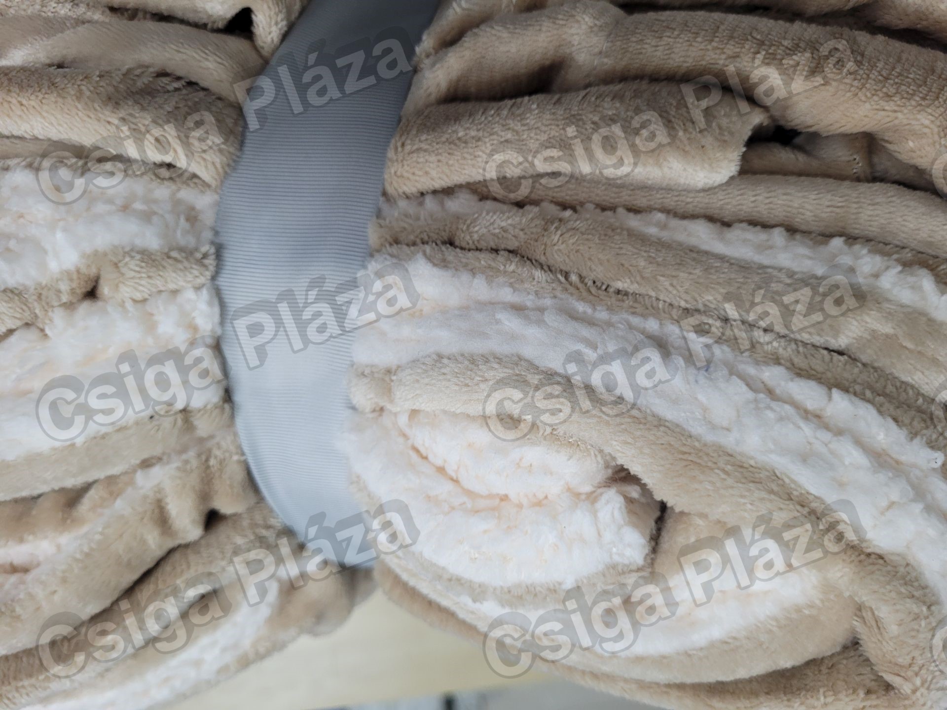 Világos drapp vastag sherpa takaró 200x230cm, bundás takaró
