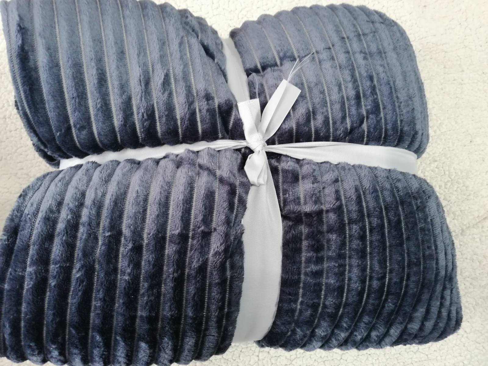 Acélszürke magában bordás vastag sherpa takaró, ágytakaró 200x230cm