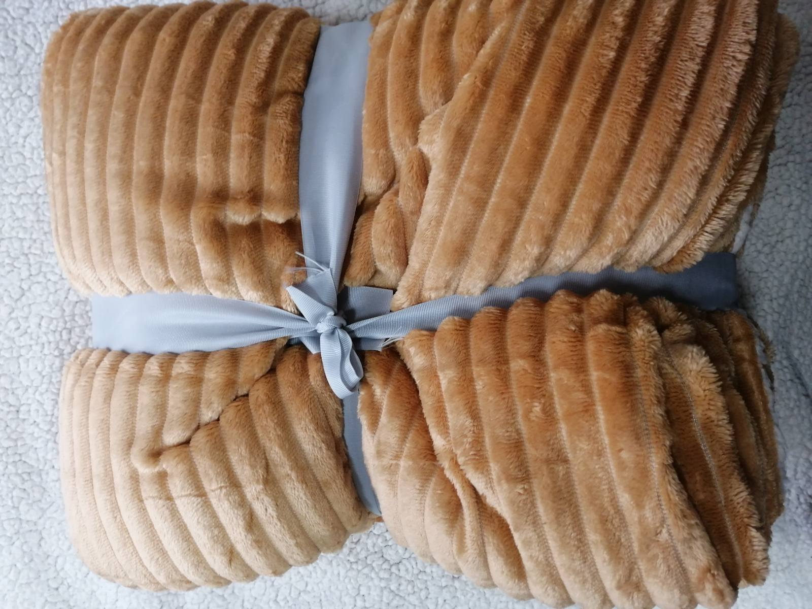 Vajszínű magában bordás vastag sherpa takaró, ágytakaró 200x230cm
