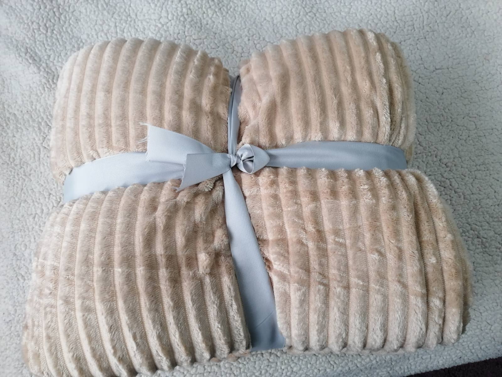 Krémszínű magában bordás vastag sherpa takaró, ágytakaró 200x230cm