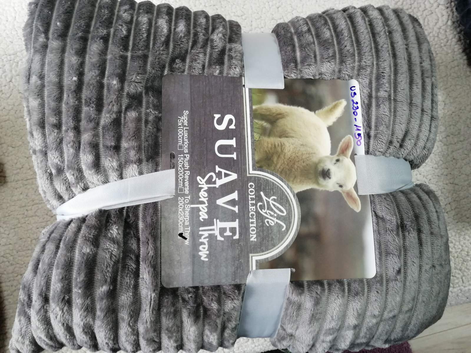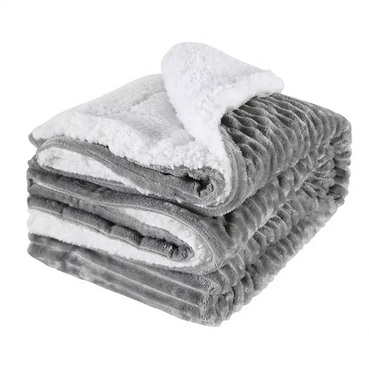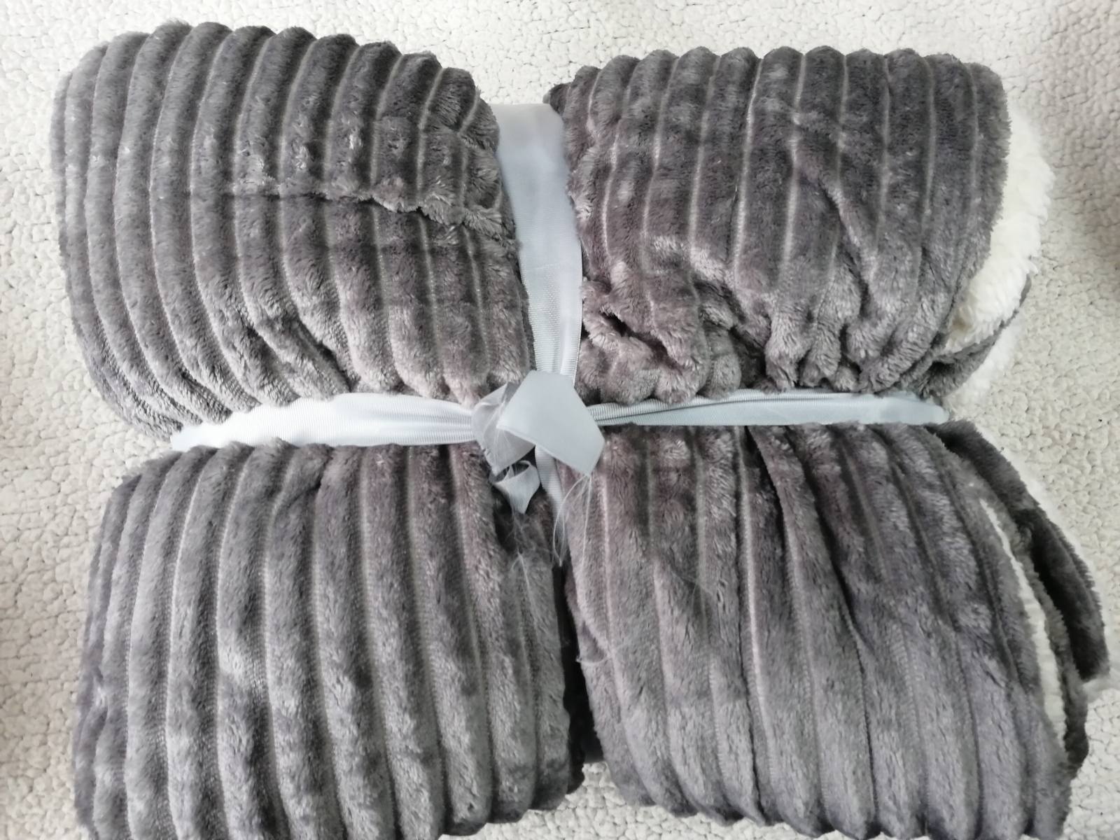 Világosszürke magában bordás vastag sherpa takaró, ágytakaró 150*200cm