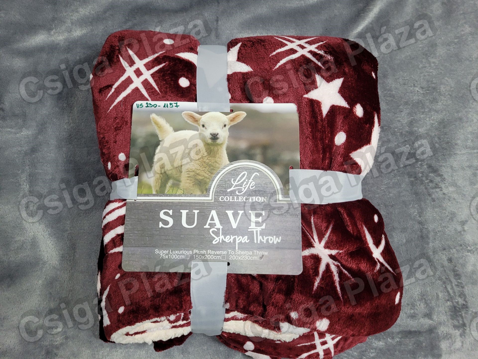 Bordó hullócsillagos vastag sherpa takaró, ágytakaró 200x230cm